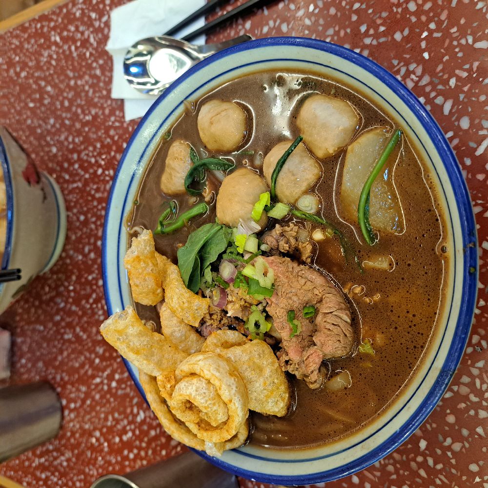 泰式船湯河(牛肉片,牛丸,炸豬皮)$78 -有加一收費,實付$86 -料多,對得住價錢,但湯頭普通,唔覺好飲 -lunch set唔包飲品