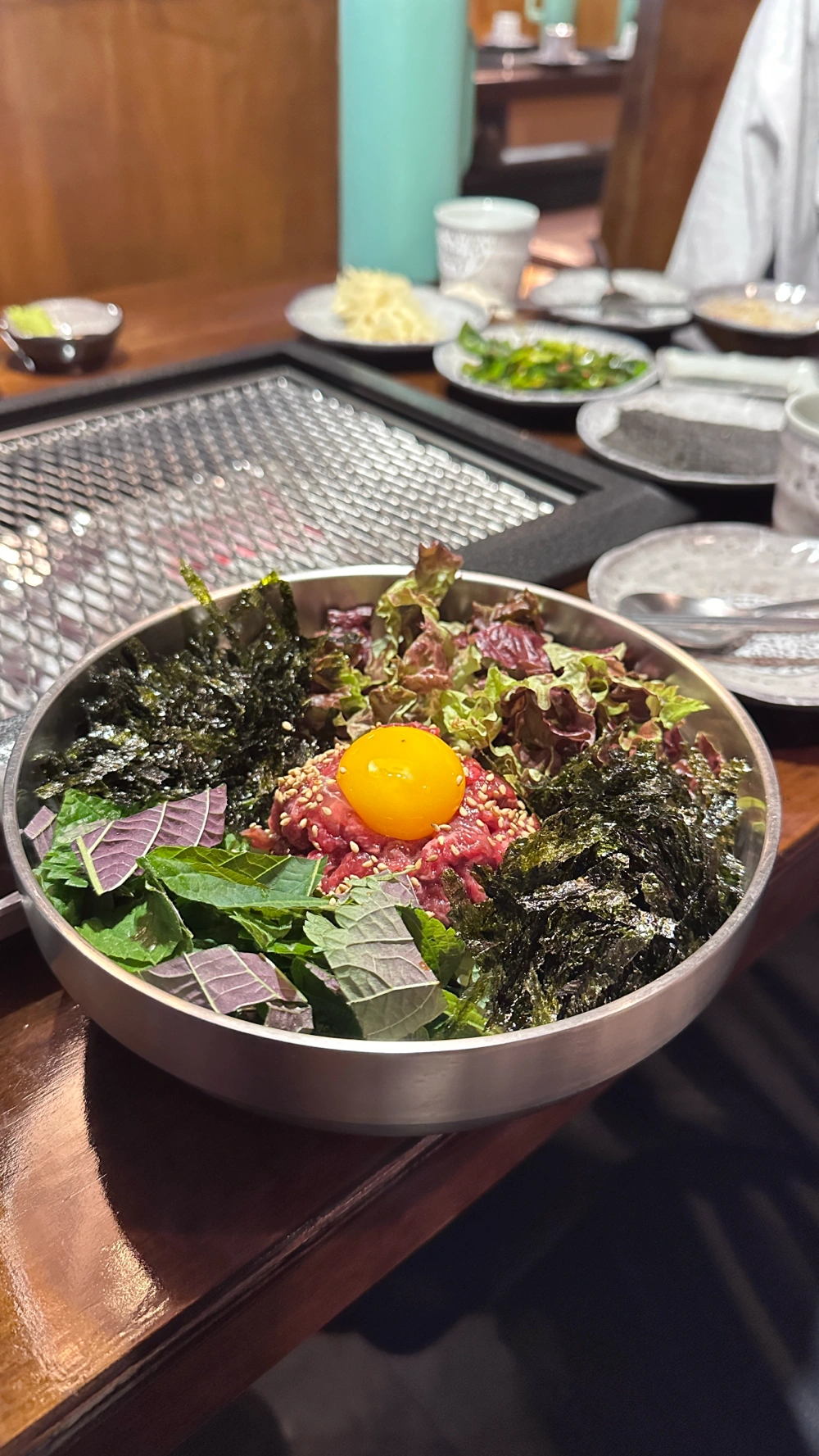 韓國的定位倒是滿正常的喔 欸欸欸欸我第一次去韓國啦 以有記憶來說,這也算是我第一次出國啦! (上一次是幼稚園畢業的時候) 這間店員都高高帥帥的 第一次吃烤鰻魚超酷,口感QQ的 生拌牛肉很鹹但我也是滿喜歡的 吃完評論還可以抽折價優惠