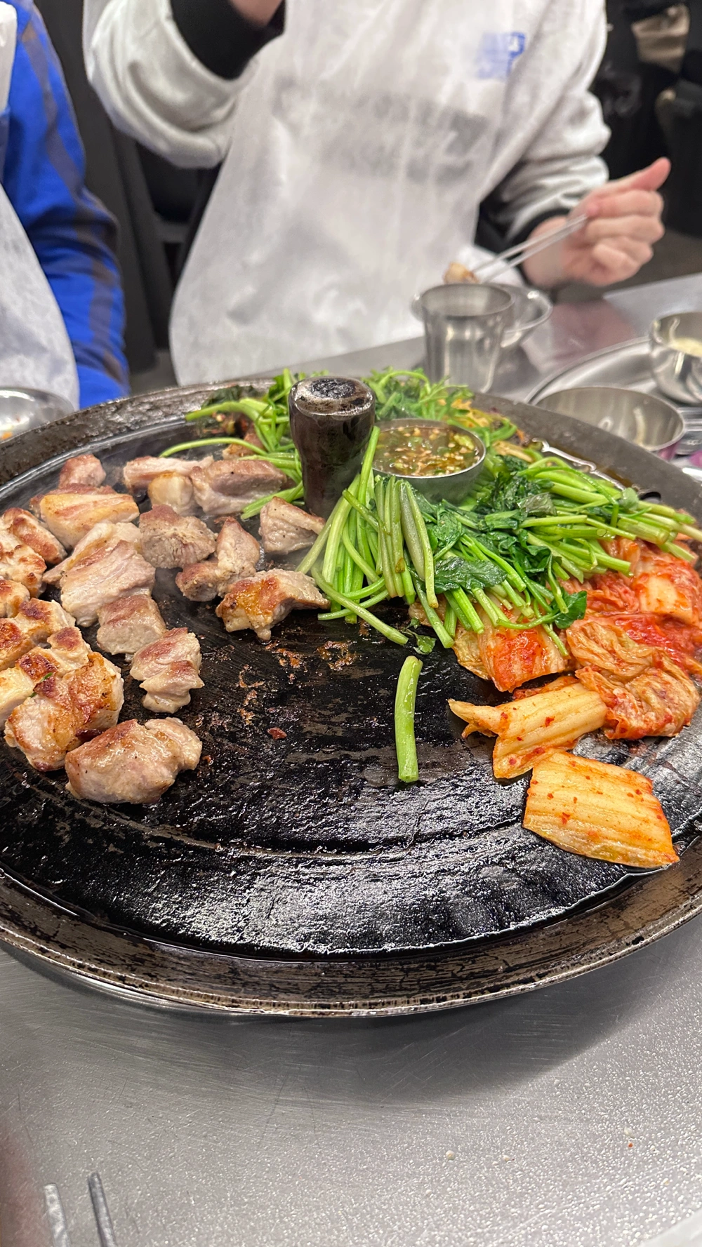 邊佑錫好朋友開的店 雖然吃到這間純屬意外,但我覺得很幸運 只能說是非常厲害,顛覆了我對韓式烤肉的印象 可以說是我個人在本次韓國行中第一喜歡的(๑╹ω╹๑ ) 水芹菜有一股很重的菜味,但我最喜歡的是豬肉! 店員也有代烤服務,不用自己動手 這間店的高高帥帥男店員更多了 我的朋友暈到咪咪冒冒心心念念XD