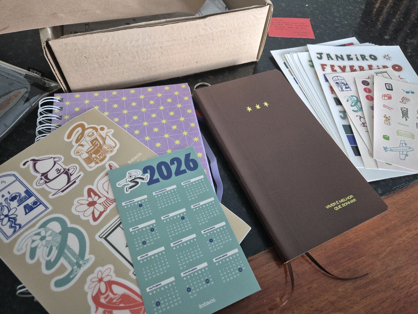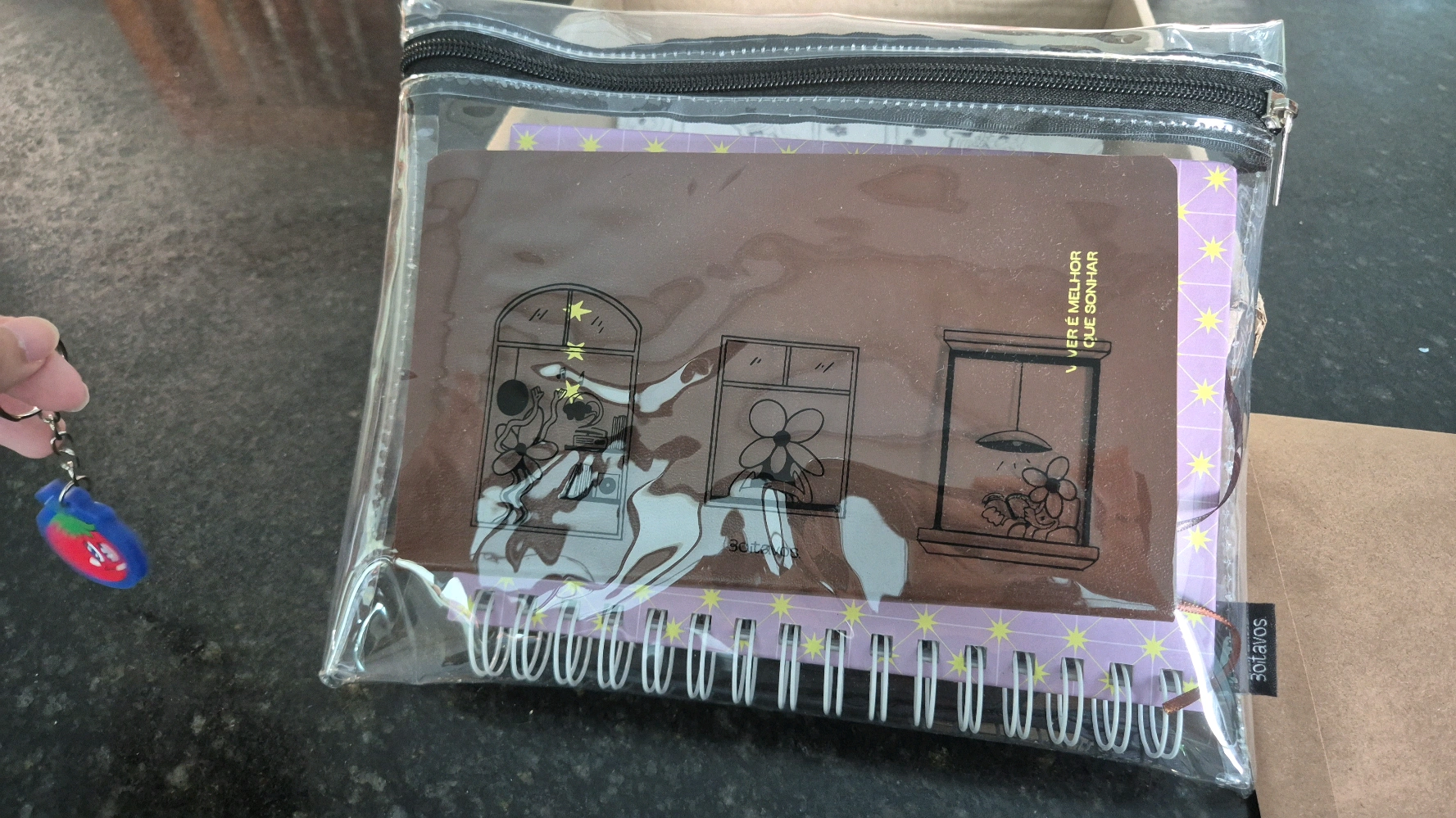 Meu Planner desse ano chegou!!!! É da 3oitavos e mesmo sendo encadernado abre 180° na mesa, vai ser muito confortável pra escrever ano passado comprei um lindo da ilustralle encadernado tbm, mas era muito ruim de escrever pq ele não abria todo pra quem ainda quer planner esse ano e ainda n escolheu, recomendo super a loja. tem a opção de espiral tbm!! todos os planners vem nessa pastinha linda 🥺🩷