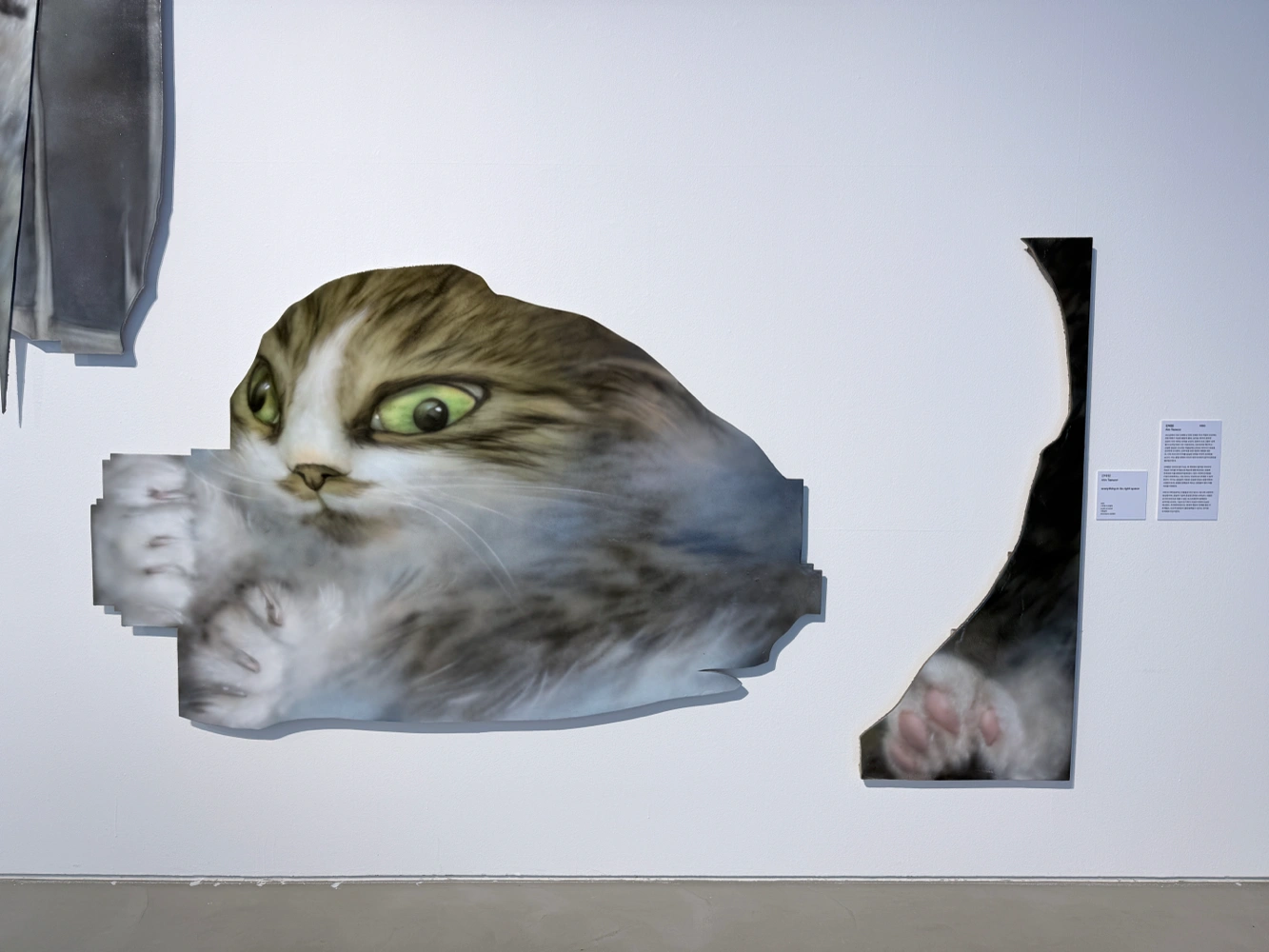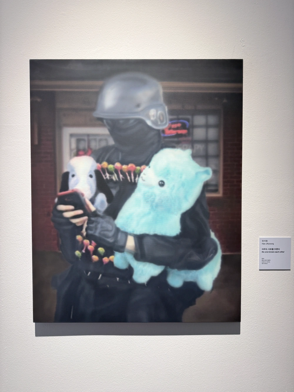 김보원 김웅현 김천수 방소윤 신정균 안태원 유장우 윤소린 이영욱 이은솔 정성진 한지형 서울대학교 미술관 디지털, 오류 등이 키워드인 전시길래 관심생겨 헐레벌떡 보러 감(학교간김에..) 결론부터 말하자면 생각보다… 퀄이 좋진 않았던것같다. 그럼에도 4점을 준 이유는 새로운 시도를 하는 다양한 작가들을 잘 모아왔다는 느낌? 새로운 담론을 형성하기보다는 이런 작가들도 있어요 하고 알리는 데에 좀 더 초점을 맞춘 느낌. 그치만 참여작가가 너무 많아서 전시가 정리가 안되는 느낌도 받았다 인스타에 떠서 취향이어서 팔로해놓았던 안태원 작가 작업도 있었다. 실물로 보게 되다니 반가웠다. 일그러진 고양이랑 투박하게 uv 매핑된 3d 오브젝트같은 입체작업이 재밌었다 (그냥 딱 내 취향이었다..) 체감상 회화작업한 사람들의 6~7할은 모두 에어브러쉬를 사용한 것 같았다. 그만큼 에어브러쉬가 유행이긴 한 것 같다 그 외에 기억에 남았던 작업: 김보원 작가의 인터랙티브 작업. 제목은 기억이 안난다.. 사람 형체를 인식하는 센서와 모니터를 두고 관람자가 가까이가면 모니터 속에 모여서 이야기하던 사람들이 대화를 멈추고 일제히 관람자 쪽을 쳐다보는 작업인데 기분이 묘하다.. 나도 끼워주라 이영욱 작가의 에어브러쉬 작업도 재미있었다. 기계로 그려낸듯한 복제된 형상이 ㄷㄷ했다 한지형 작가 역시 에어브러쉬 작업을 했는데 배그에 나올것같은 무장한 군인이 사탕을 잔뜩꽂고 인형을 들고 핸드폰하는 장면의 회화작업이 재미있엇다