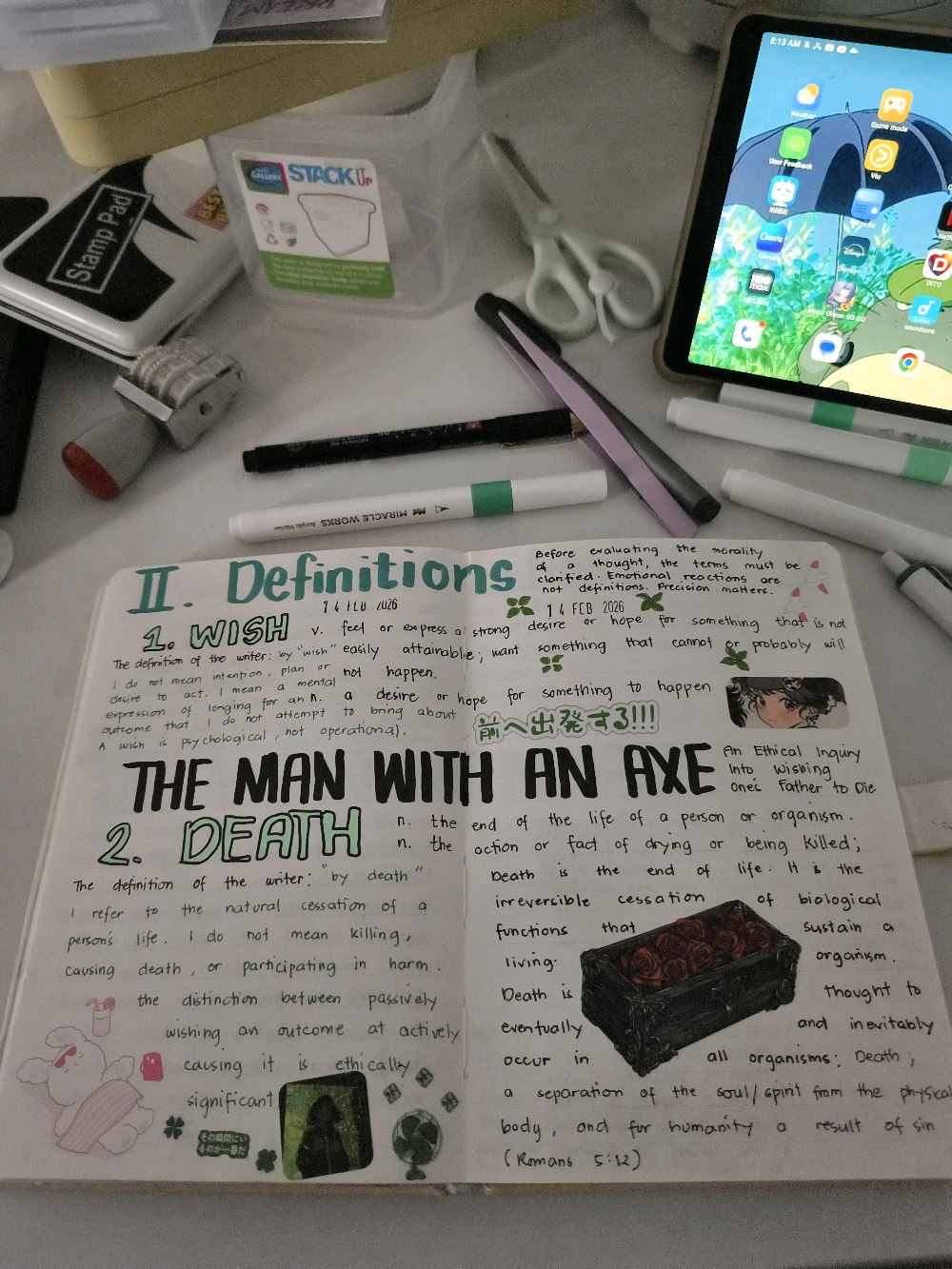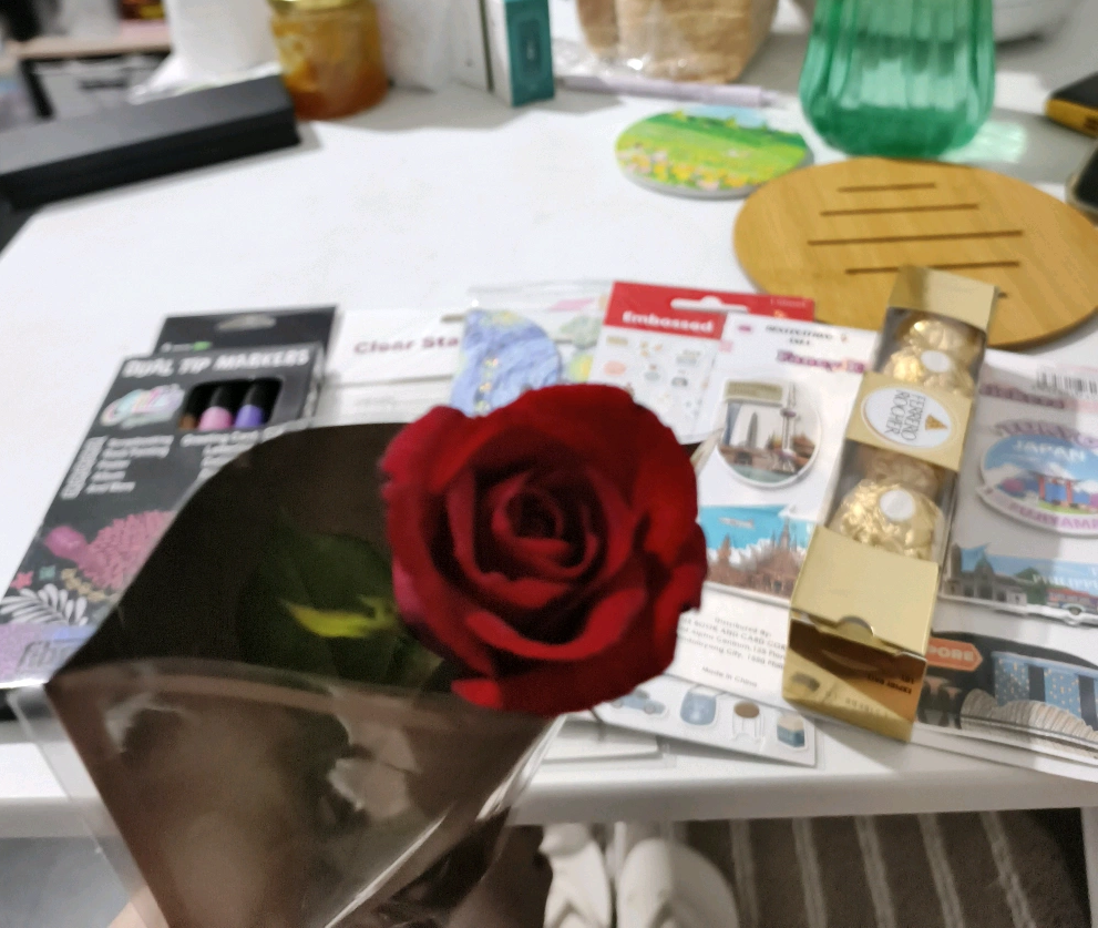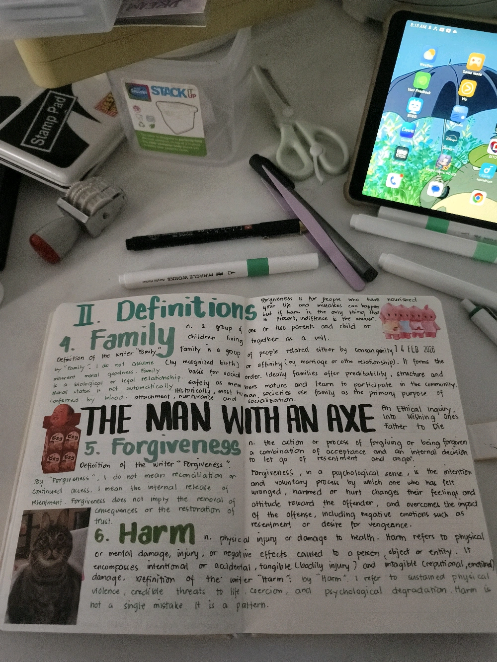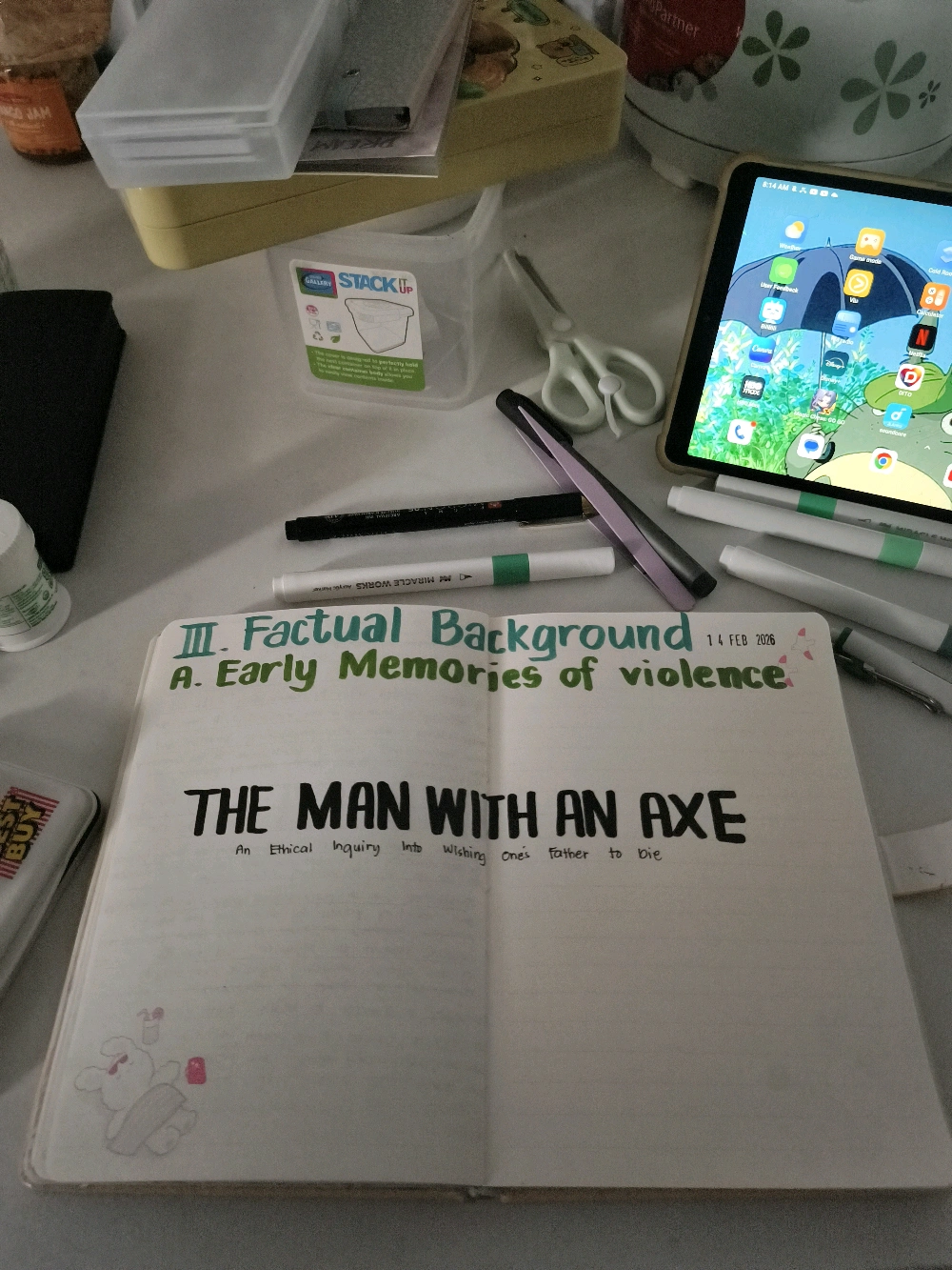DAY OFF! 🪻 I think I have a cold. I recently got an idea on exploring my inner thoughts of just wanting my father to die already, and on a moral sense is thinking about it equally evil? even if there is continued harm produce by this individual? or should we as a person, people, just collectively accept the violence and be forgiving all the time? My partner got me flowers, a chocolate and stationaries 🪼🪻🩵