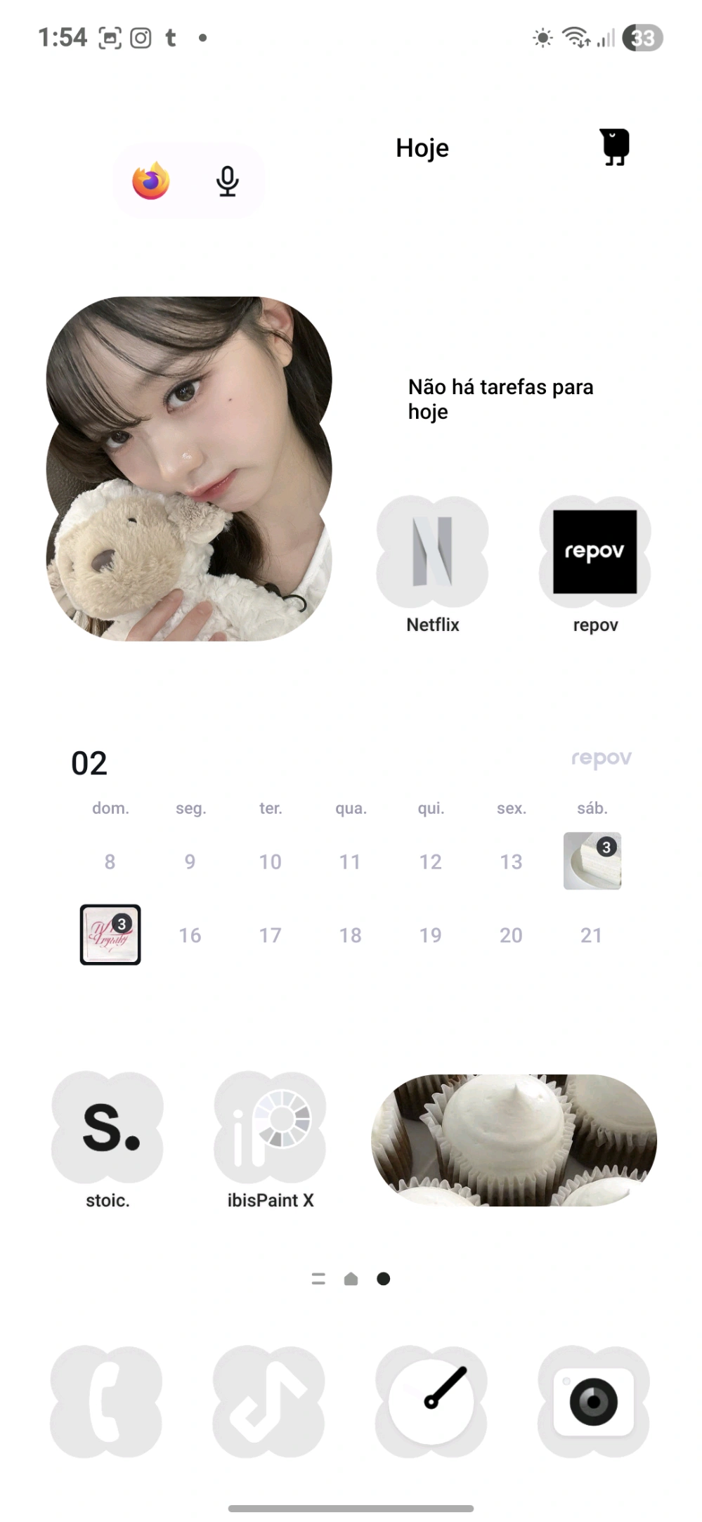 eu sou apaixonado em organizar e personalizar meu celular de cabo a rabo recentemente fiz uma que ficou uma gracinha!!! os icons eu fiz pelo theme park do samsung, usei o efeito glass os widgets sao da galeria esse widgets que tem 3 fotos escrito "cooking time" fiz pelo kwgt eu gosto de ter uma tela inicial sempre bem cheia, não curto tanto minimalismo, e se for ter minimalismo, que sejam itens minimalistas, mas varios itens