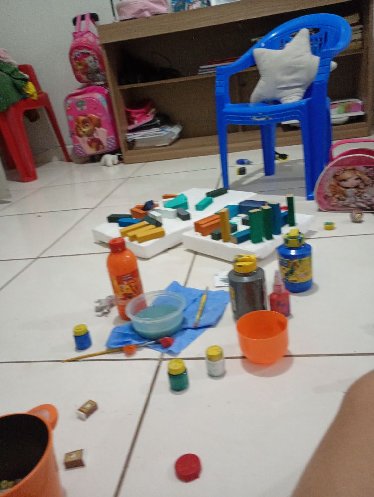 O final de semana tem sido interessante, assisti bastante joguinhos e agora estou pintando as peças de jenga da minha irmãzinha, bem terapêutico 😸.