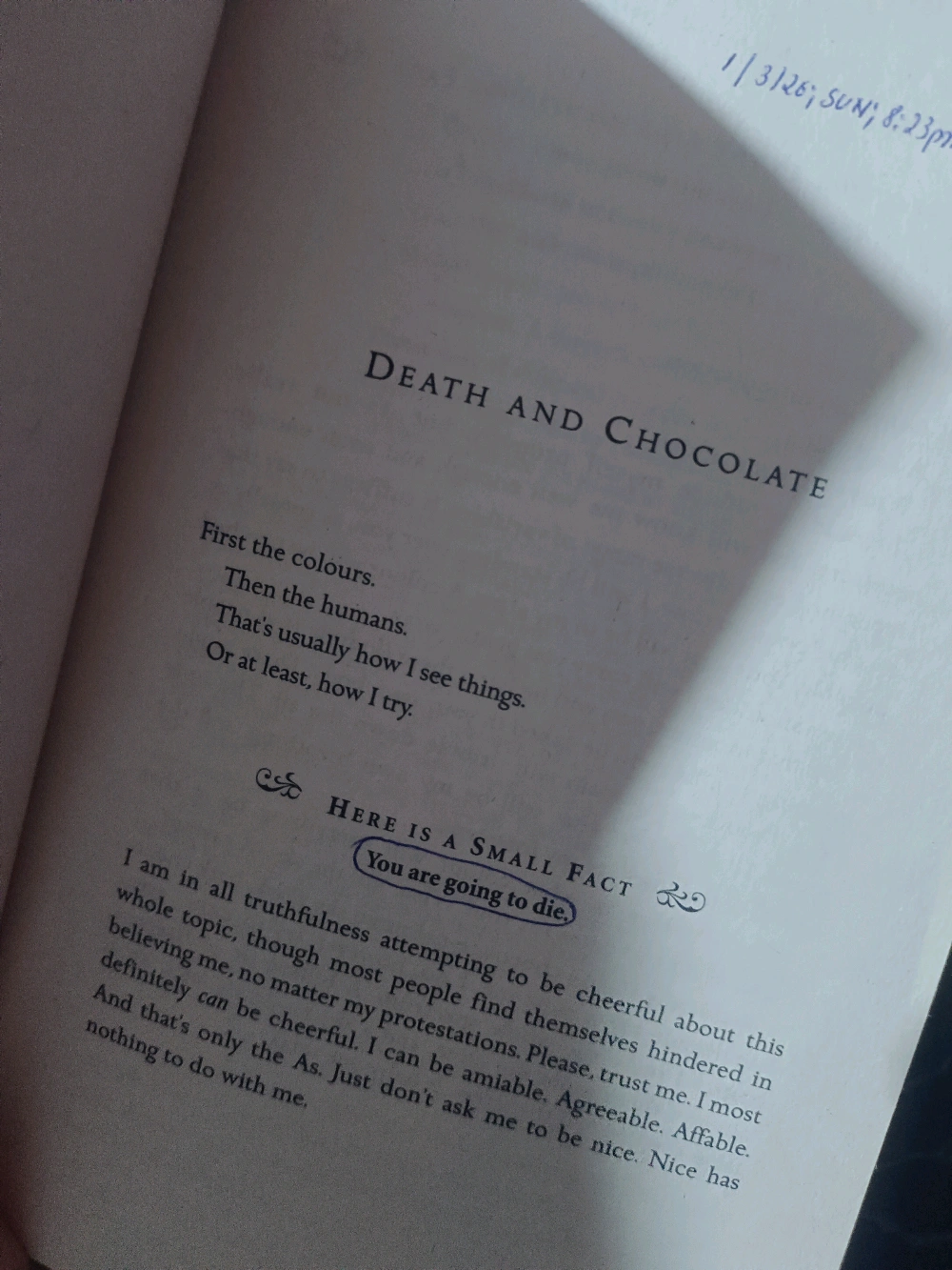 starting this book from today 😭🙏... finally! as I got this one back in 2022 from school lol and tbh it's pretty interesting, thought I'll read only few pages and baam I'm nearly in page 60, what a slow read. The weather is freaking cold and it's raining, warm blankets is the perfect time to read 😋😋.. the only thing that that's off is my hands are freaking cold 😭🙏...