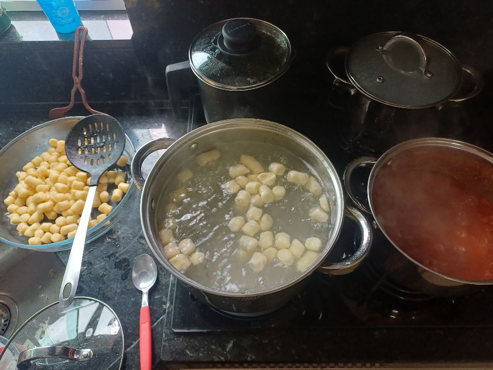 Ontem, eu fiz um nhoque de massa pronta e molho de tomate com queijo 🥣
