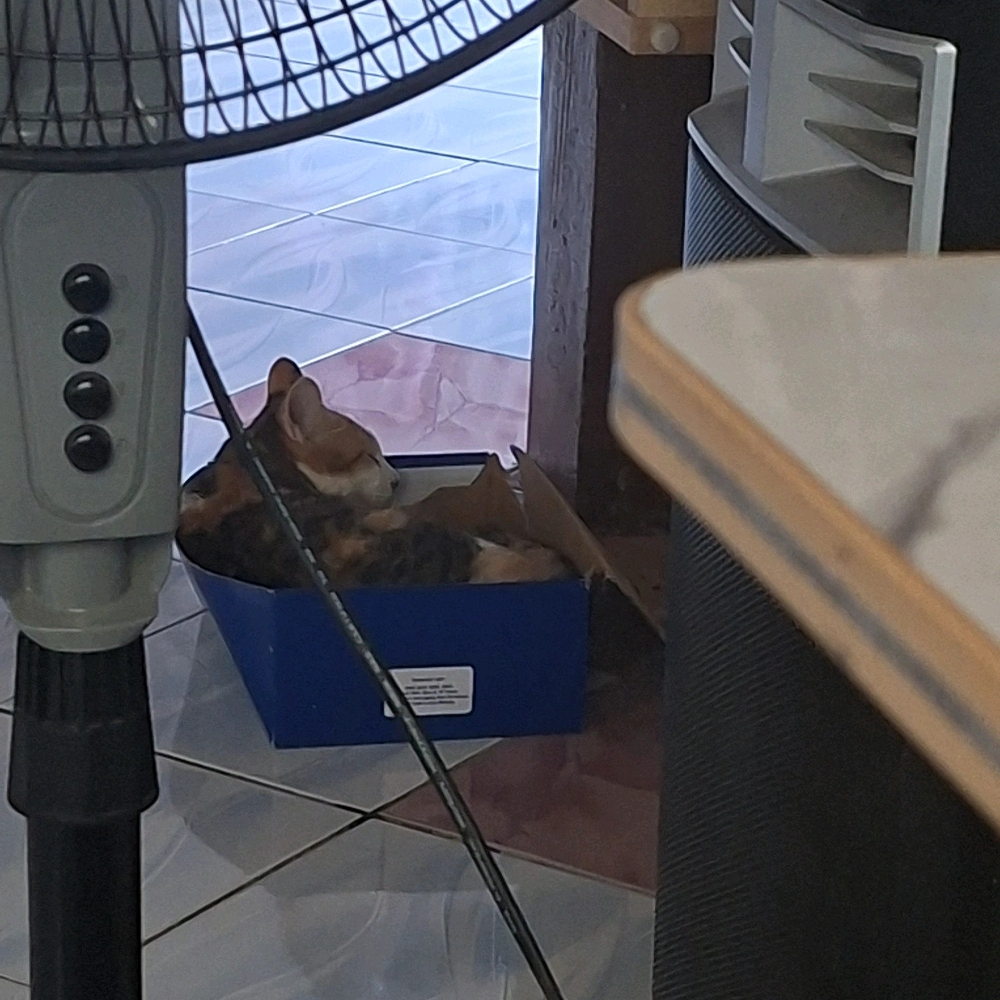 i put on loud music and she went into her box with curled ears