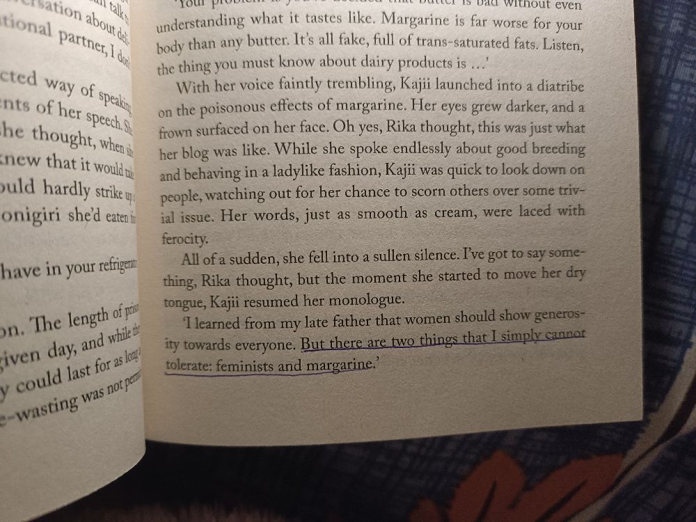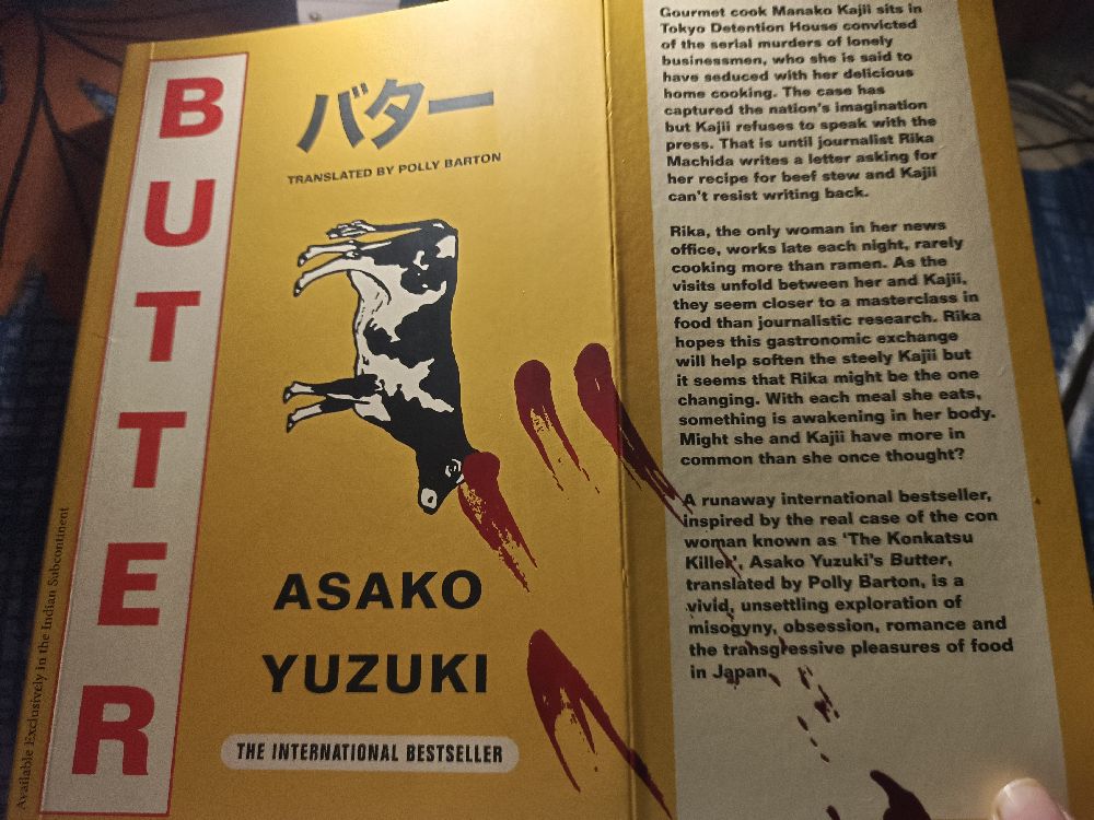 Started reading this yesterday, recommended by the bookstore uncle. There's a line that's kind of trademark in the back of the book which goes like "THERE ARE TWO THINGS THAT I SIMPLY CANNOT TOLERATE: FEMINISTS AND MARGARINE", which made me sure that this is the book I'll read lol ... I'm reading it slowly because there are so many new words that I have to constantly look for their meanings, thanks Sir Barton :) . I also loved the cover looks simple and plain with a cow and then comes the handprint in red 😭🙏. This will be a long read. p. s. reading at night makes you hungry 😔🙏