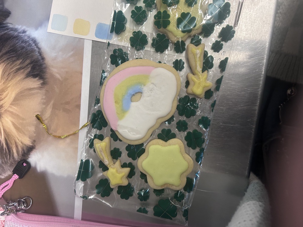 hair check for my hair yesterday !! i was supposed to have a tennis game today but it was canceld due to rain💔💔 my friend made me cookies !! also happy st. patricks day to my beautiful girlfriend, my fav Irish friend, nial horran and robbert sheenan🫰BIGGG fan of the irish yay go irish people