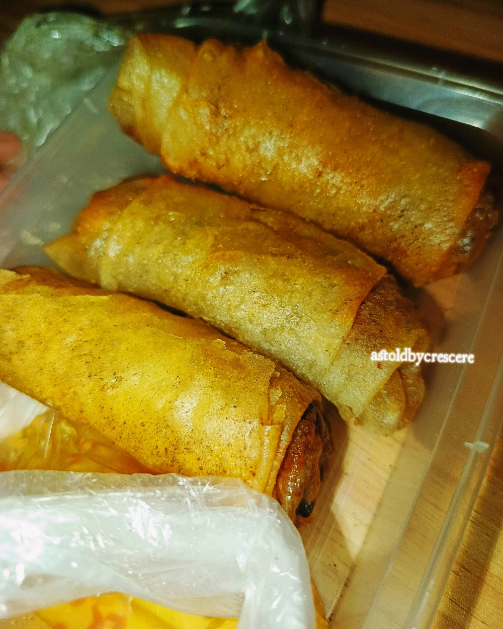 Our local vendor selling snacks/meryenda passed by our house and look what I bought. It's the ever famous Mungbean sprouts spring roll or Lumpiang togue,best partnered with sweet and spicy vinegar. 😁☺ this would be my lunch.kain! #food #pinoyfood #snacks #lumpia