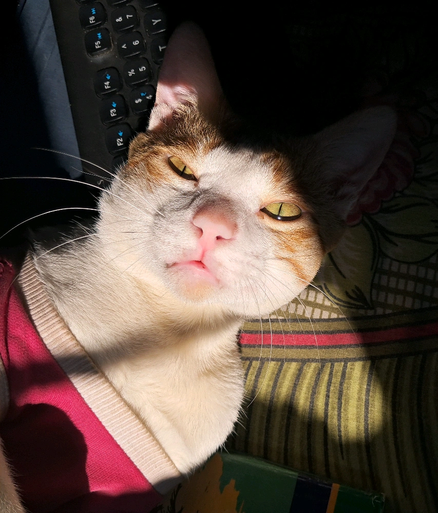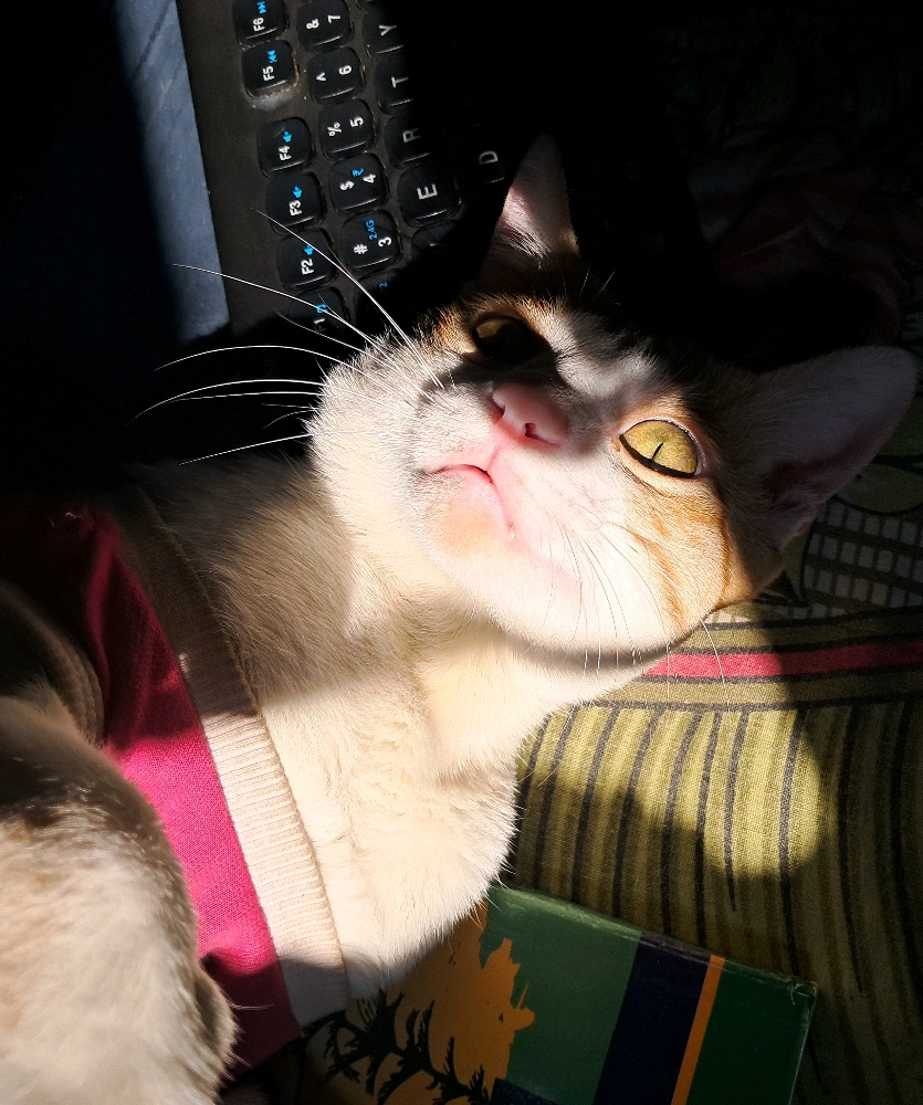 Here is my menacing cat. His favorite place to pee? My books given he has his own multiple litter box. MULTIPLE!!! YES. His favorite place to doze off? My books and my systems.