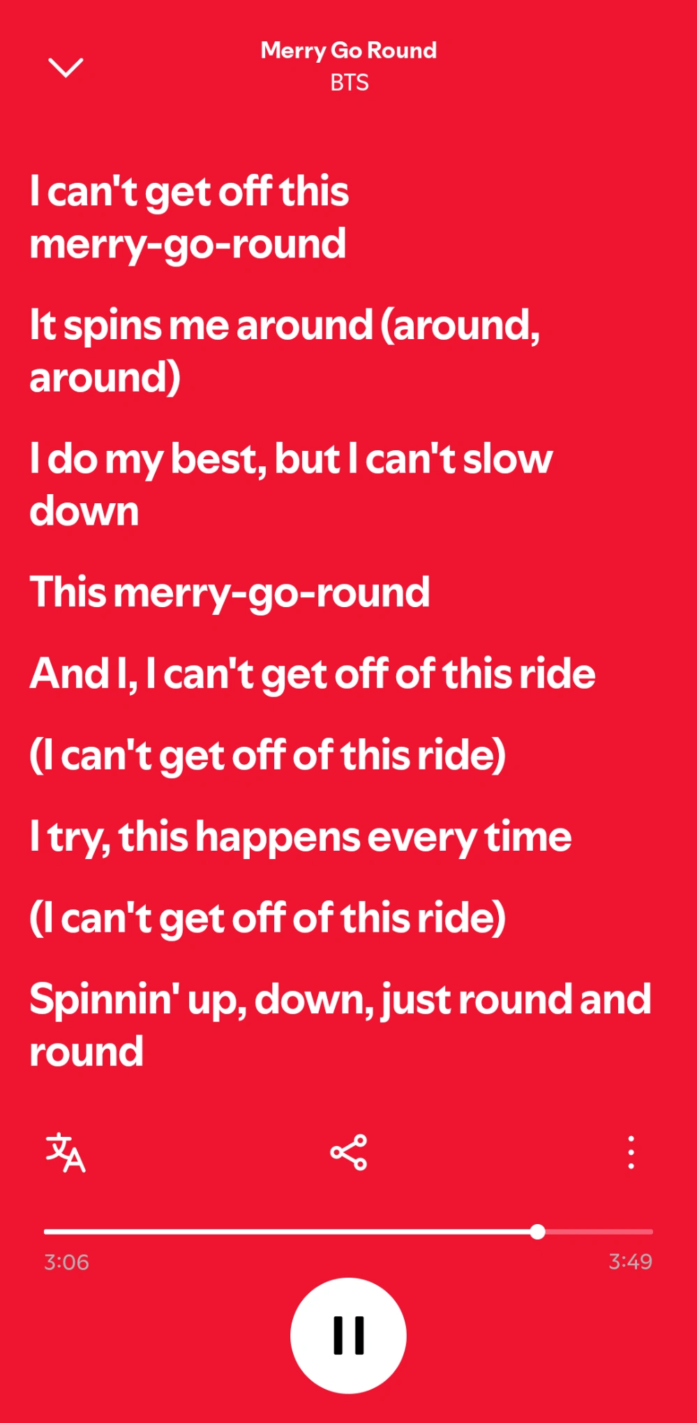 I'm reading this book right now. It's said here "Your life is supposed to be a journey from one unique place to another; it's not supposed to be a merry-go-round that brings you back to the same spot over and over again." Doesn't it mean the exact same thing as BTS' new song merry go round.....??? I'm so proud of BTS for projecting such deep meanings through their songs.