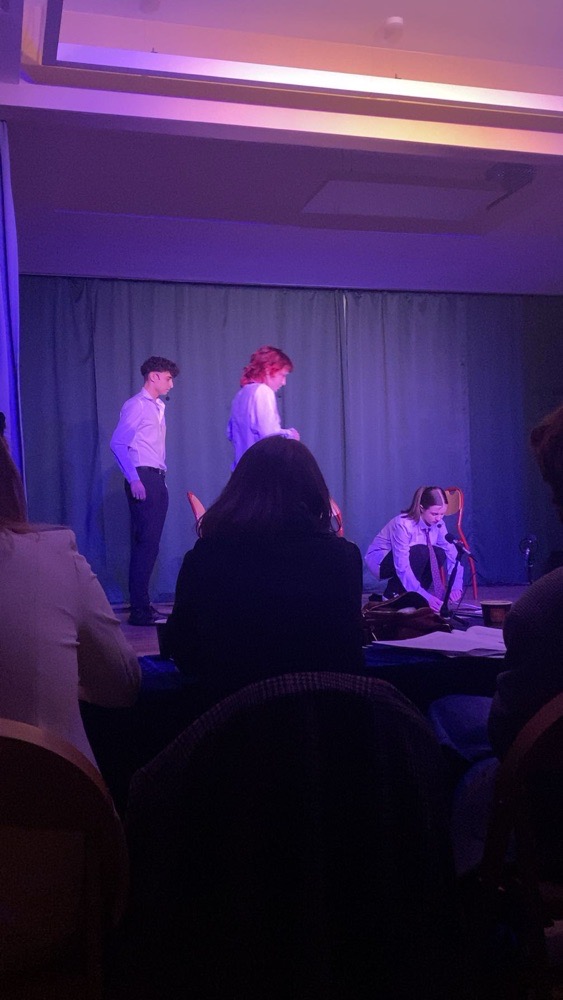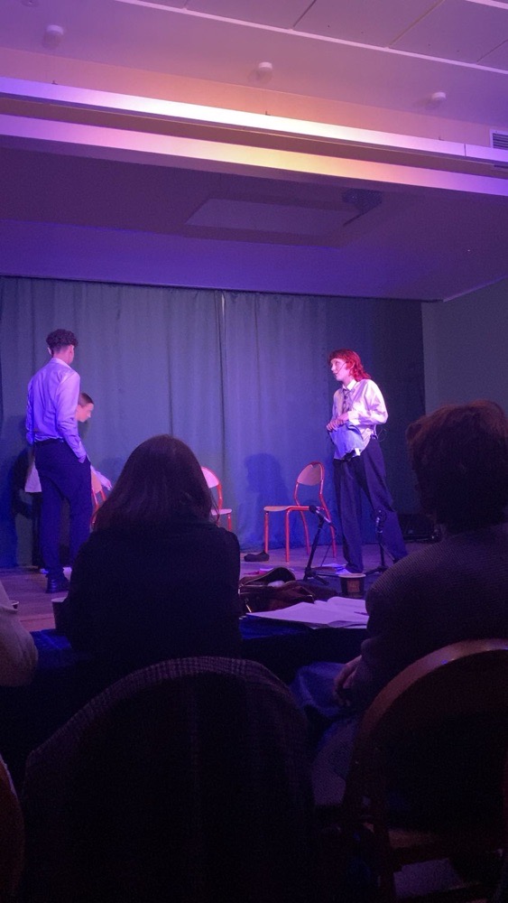 This time I wasn’t performing but watching my group mates play AND THEY DID SO GOOD! I am very proud of them even thou they say they forgot some lines. NO ONE NOTICED ANYWAY the play told about three men in different social classes who was crusing together. Once when they got hungry they couldn’t find any food left on the boat. They had no other choice but to eat one of them so they started discussing about who will it be. The original was written by polish playwright Sławomir Mrożek.