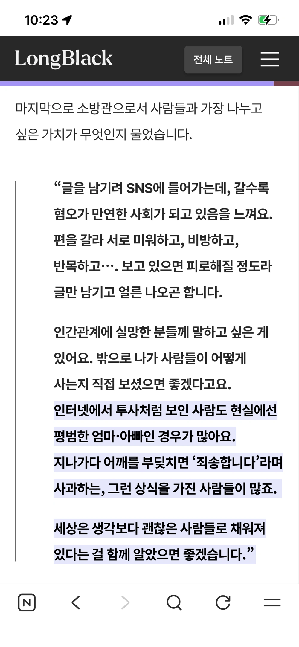 [롱블랙] 백경 : 글 쓰며 성찰하는 소방관, 살아야 할 이유를 전하다
