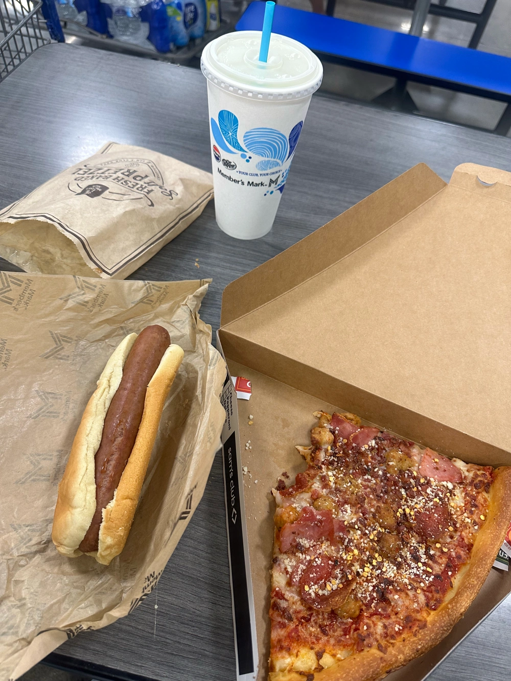 i got a slice of the four meat, a hot doggo combo, and a cinnamon sugar pretzel with a mountain dew as my drink. while waiting for my food, i did eat a chocolate croissant that i came to buy, but was actually bamboozled by the size of them compared to how they’re advertised. sad, but we still have choco croissants :)