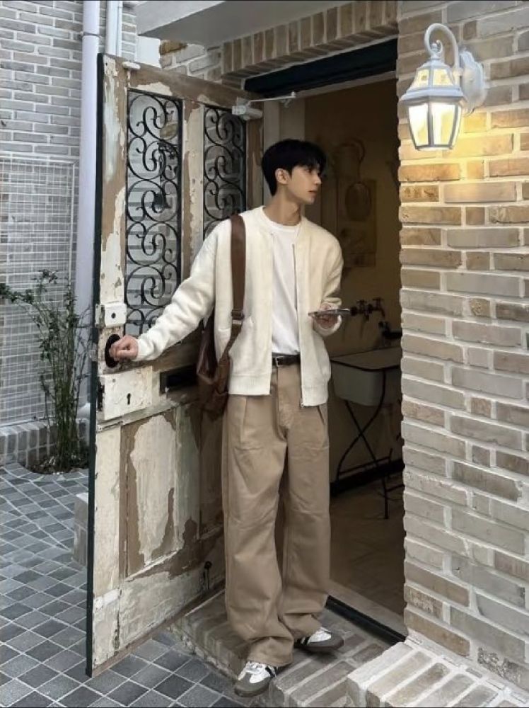 You can't tell me we weren't. We went out for a breakfast with his family at a restaurant. I was SOO surprised and happy when I spotted him from afar and realised we where matching! I obviously did not talk to him or approach him. I just admired from as far away as possible. Attached is the clothes people. I wore the dress in the photo and he was wearing something similar to the outfit I found on Pinterest. Except he was wearing a jumper instead of a cardigan and no bag.
