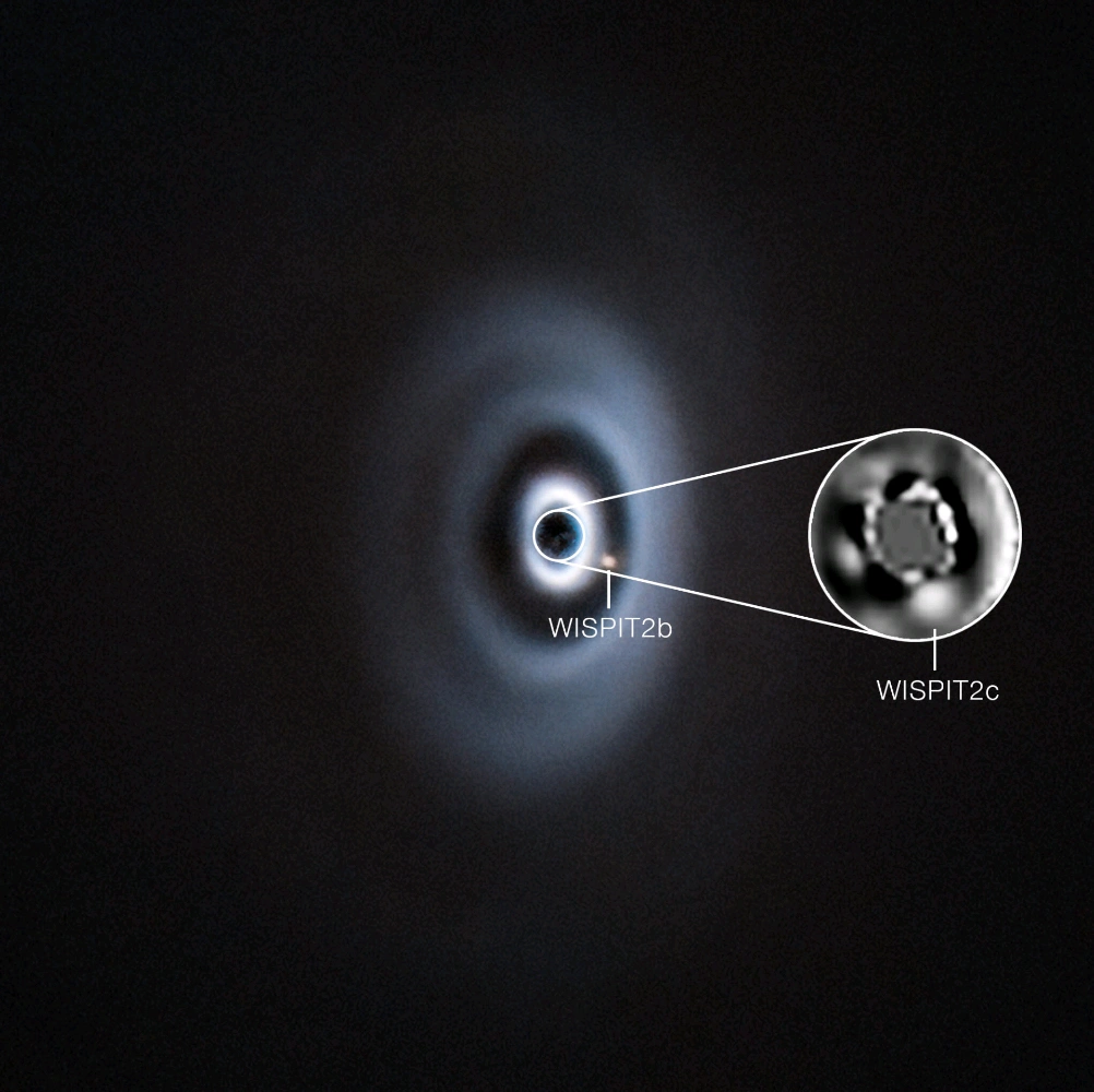 在鄰近年輕恆星塵盤捕捉到形成中氣態巨行星清晰影像 編譯: 蔡承穎 ----- 摘要: 核心發現:雙行星系統的形成 研究團隊(歐南天文臺的極大望遠鏡與干涉儀)證實了在 WISPIT 2 恆星周圍存在兩顆巨大的氣態行星,它們正處於成長階段,並在塵埃圓盤中清理出明顯的軌道間隙。 WISPIT 2b: 發現時間:2025 年 質量(與木星相比):約 5 倍 與主星距離(地日距離AU):約 60 AU 描述:較早發現,展示了直接成像技術的潛力。 WISPIT 2c: 發現時間:2026 年 質量(與木星相比):約 10 倍 與主星距離(地日距離AU):約 15 AU 描述:質量更大且更靠近主星,與 2b 共同構成類似木、土星的結構。 觀測技術與突破 此次觀測成功的關鍵在於結合了多種高階天文儀器,克服了觀測極靠近恆星之微弱訊號的挑戰: -VLT(極大望遠鏡): 利用 SPHERE 高對比成像儀器進行初步掃描,過濾掉主星強光以搜尋行星蹤影。 -VLTI(極大望遠鏡干涉儀): 運用 GRAVITY+ 近期的性能升級,透過干涉技術大幅提升解析度,成功辨識出距離更近的 WISPIT 2c。 -技術意義: 標誌著現代觀測儀器在探測「初生行星結構」方面達到了新的里程碑。 科學意義與後續推論 -「時光窗口」效應: 觀測 WISPIT 2 系統如同直擊太陽系早期的演化過程,有助於科學家研究行星系如何從塵埃圓盤轉變為成熟的系統。 -間隙結構證據: 觀測顯示兩顆行星皆位於圓盤間隙內,證實了「行星重力清除軌道物質」的理論模型。 -潛在的第三顆行星: 在圓盤外側發現了一處較淺的間隙,研究團隊推測該處可能隱藏著一顆質量接近土星的第三顆行星,目前尚待進一步觀測確認。 -總結: 此項研究不僅捕捉到了單一行星的誕生影像,更重要的是提供了一個完整的、正在演化中的行星系統範本,對理解氣態巨行星的形成機制具有決定性的貢獻。 影像來源:ESO/Lawlor et al.