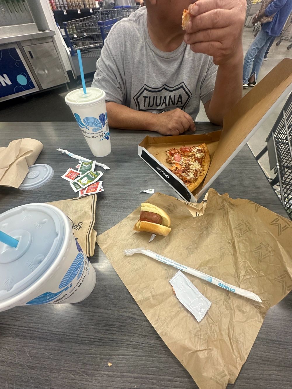 he got a slice of the four meat pizza and a drink for $2.50 and i got the $2 hot dog combo and one of their cookie dough brownies. both were tasty. we did share everything, but the drinks. i got pepsi my first round and he got mountain dew like he usually does. i was chugging my pepsi down because i too wanted mountain dew, but the pepsi wanted to be tasted. i hope the dubai iced creams are delicious.