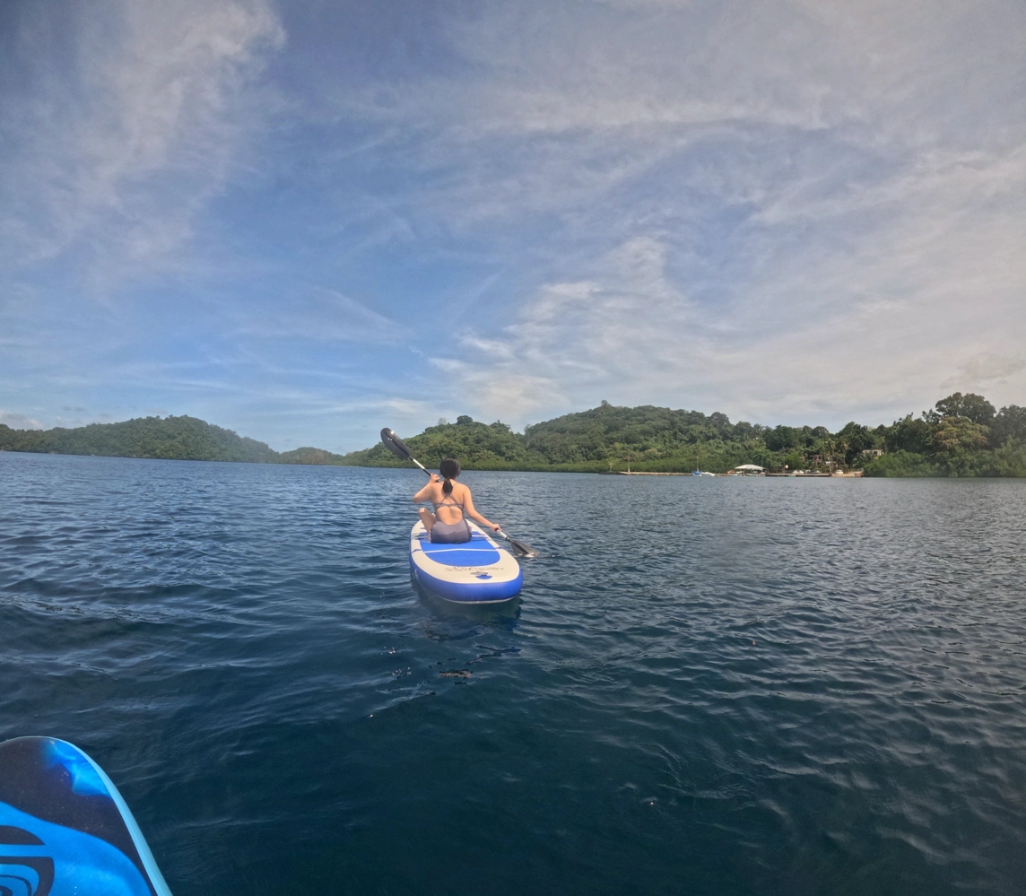 上午玩SUP,下午參觀市區後返程✈️ 明明不太會游泳+第一次划,也不知道哪來的膽一人划一艘🤣 這樣才能拍照啊!!還忙著水上會車交換Gropro 🤣 太陽無敵烈本來還穿水母衣,後來太熱直接放棄,太投入還划一個超遠,差點沒力氣划回岸邊⋯⋯ 朋根本高手遠遠把我拋在後頭www 朋:我會划龍舟還要告訴你? 只能說不愧是兩個孩子的媽,一手抱一個練出來的臂力⋯⋯ 導遊:別人划20分鐘又累又熱就停了,妳們兩個居然曝曬划一個小時還超遠?真的瘋⋯⋯ 因為紫外線過強什麼防曬都無用直接黑一層😌 前兩天去海裡還沒事最後一天直接黑www And,回程的空景超美的!!