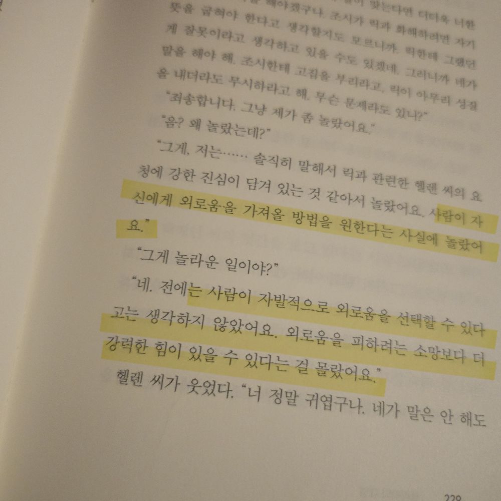 "그거 참 좋겠다. 지나간 것을 그리워하지 않는 거. 돌아가고 싶어 하지 않는 거. 자꾸 지난 일을 돌아보게 되지 않는 거. 그러면 모든 게 훨씬 더······."