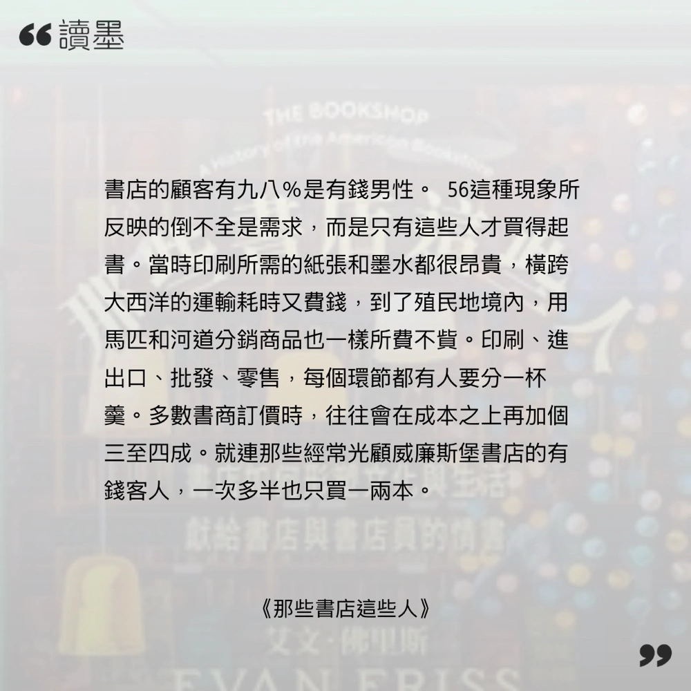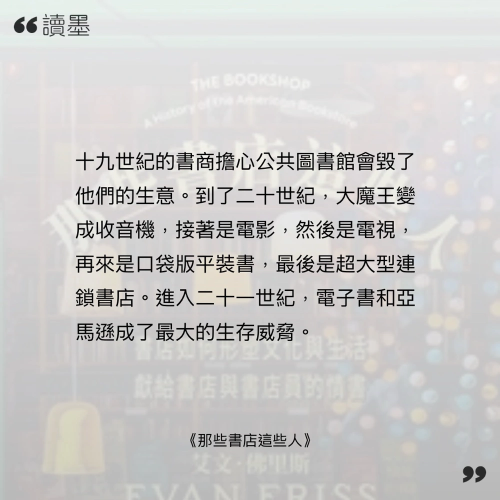 幾好睇! 本書主要講美國書店的變遷,由一架書車開始,點樣令閱書風氣開始流通,再成為書店、再變成百貨公司,令書籍普及。 當中亦有講到,書籍銷售手法點樣變到好似現代咁。一諗道當時啲書唔係個客自助揀,而係要同書店店員、店主講,佢拎比你,你想睇有咩書?sorry 啲書名向入面,你只會睇到啲紙。咁無自由,我就唔會買書了。 亞馬遜真係萬惡之源!!!但係真係好好用嘛☹️☹️我都係個大仆街黎☹️☹️☹️☹️ 本書比較着重經營個邊,講點揀書去賣、點樣增加銷售機會,所以建議配搭 圖書館生滅史 呢本書睇,呢本除咗有美國閱讀文化,亦有講英國個邊的,對照黎睇都好有趣。(有講英國點解啲書要寫咁長,中間有啲位係要塞內容去加長本書😂😂😂)