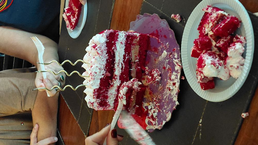 comemorando vinte e três anos de existência com minha família! fomos pra um restaurante. fui pro buffet pra comer frutos do mar pois estava a meses com desejo, até provei polvo pela primeira vez. comemos bolinho red velvet (tava muito bom) e ganhei presentinhos. foi bem agradável! obrigada mamãe por me trazer ao mundo! (atualizando atrasada mesmo 😽)