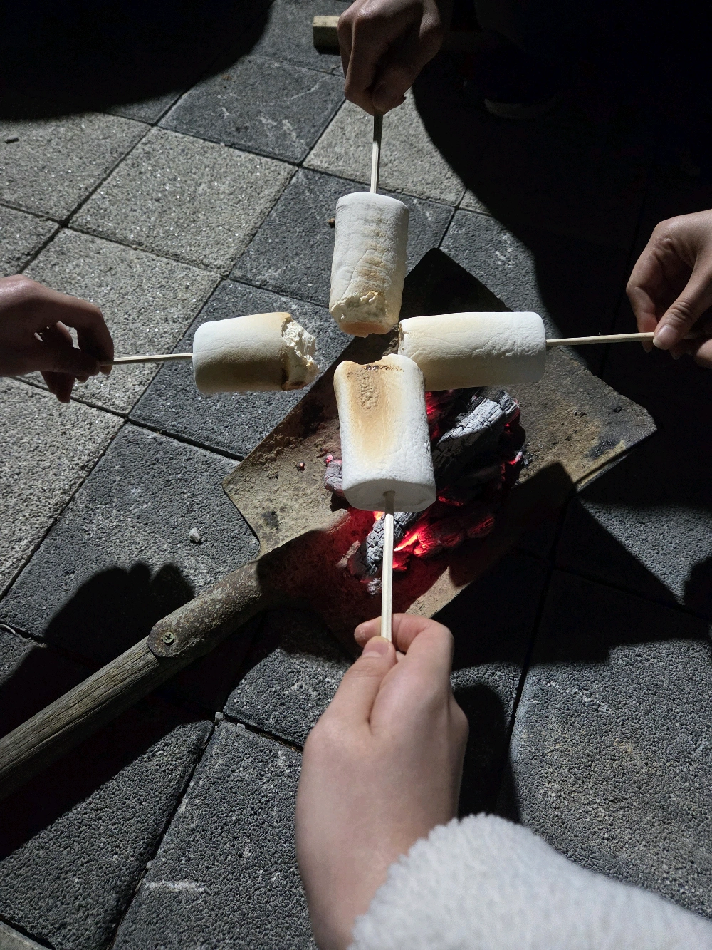 💬 사촌들이랑 모여서 마시멜로우를 구워 먹었다. 💬 마시멜로우를 얼마만에 먹어보는 건지 ㅋㅋㅋㅋ 초등학교 때 이후로 이번이 처음이었다. 💬 들고 꼬치에 구워서 먹는 것보단 불판에 노릇노릇하게 구워 먹는 게 더 맛있었다 ㅎㅎ