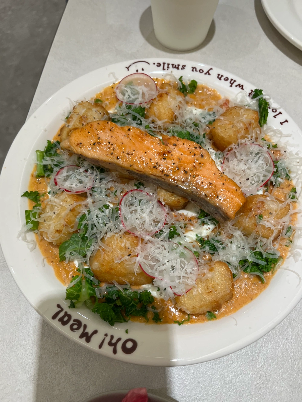 진짜 맛집 연어 스테이크 뇨끼 소스는 레시피를 물어보고 싶었고 저거 음료가 우롱에이든데 진심 이런 에이드 종류 먹어본거중에 젤 맛있었움!!!