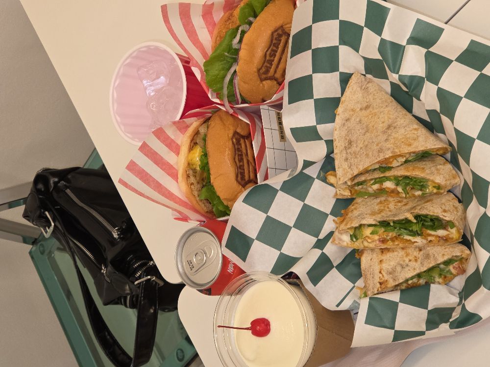 하 여기 먹어본 수제버거 중에 탑!! 쫀맛이에요오옹💗🍔 약간 짜고달고기름지고느끼하고 이런 수제버거 집이 아니라 가정집에서 정성스럽게 한 것처럼 적당히 담백하고 달달하고 속이 편한 느낌 수제버거 원래 많이 못 먹는데 특히 새우버거가 너무 맛있었음 살이 진짜 부드럽고 가득 들어있어서 대박ㅠㅠ 롯데리아처럼 잘게 다진 느낌이 아니라 씹는 맛이 있었음!! 오픈한지 얼마 안 돼서 깔끔하고 새 건물 느낌 낭낭함