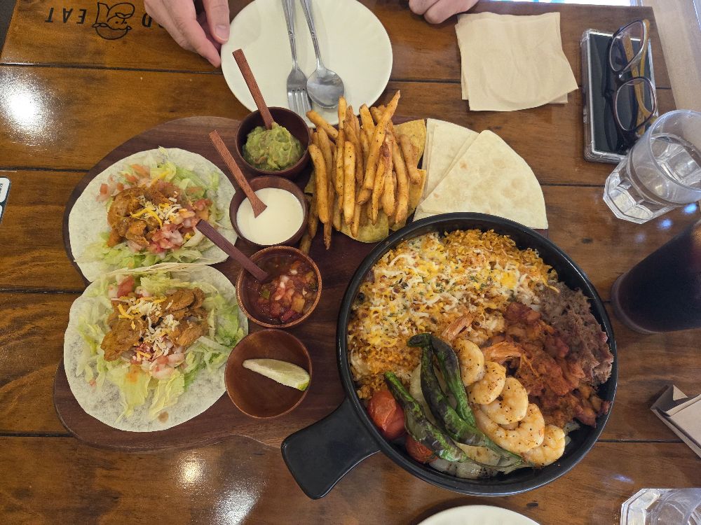 직원 분이 너무 친절햇슨~~~ 파히타 맛있음~~ 볶음밥 무난무난, 구운양파 맛남 치킨타코도 매콤해서 맛있음~~ but 내 기준 타코 맛집은 모리토스타코(센팤점) 파히타 맛집은 카사데타코(트리플)이 최고인 것 같음 뭔가 채소가 듬뿍 있었음 좋겠다 의외로 감튀와 사워소스가 대 존 맛