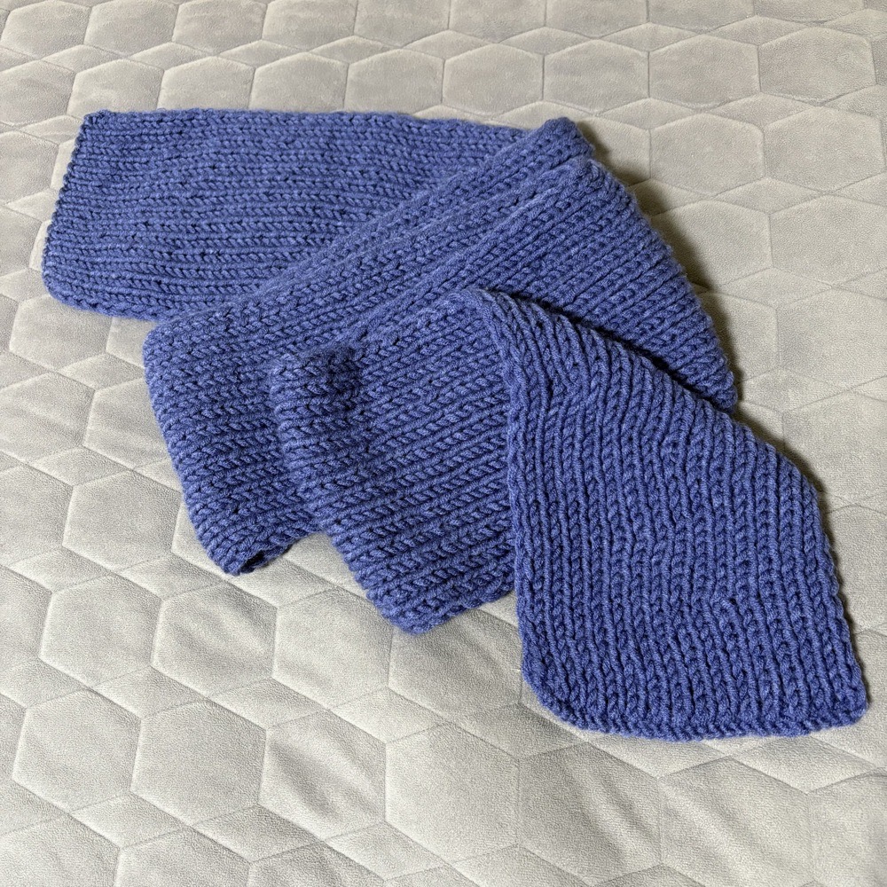 구매처: 바늘이야기(오프라인 구매) 실: 뉴테디울(스틸블루) 바늘: 5호...? 코수: ...20코? 1) 세탁 전 2) 편물(목도리)