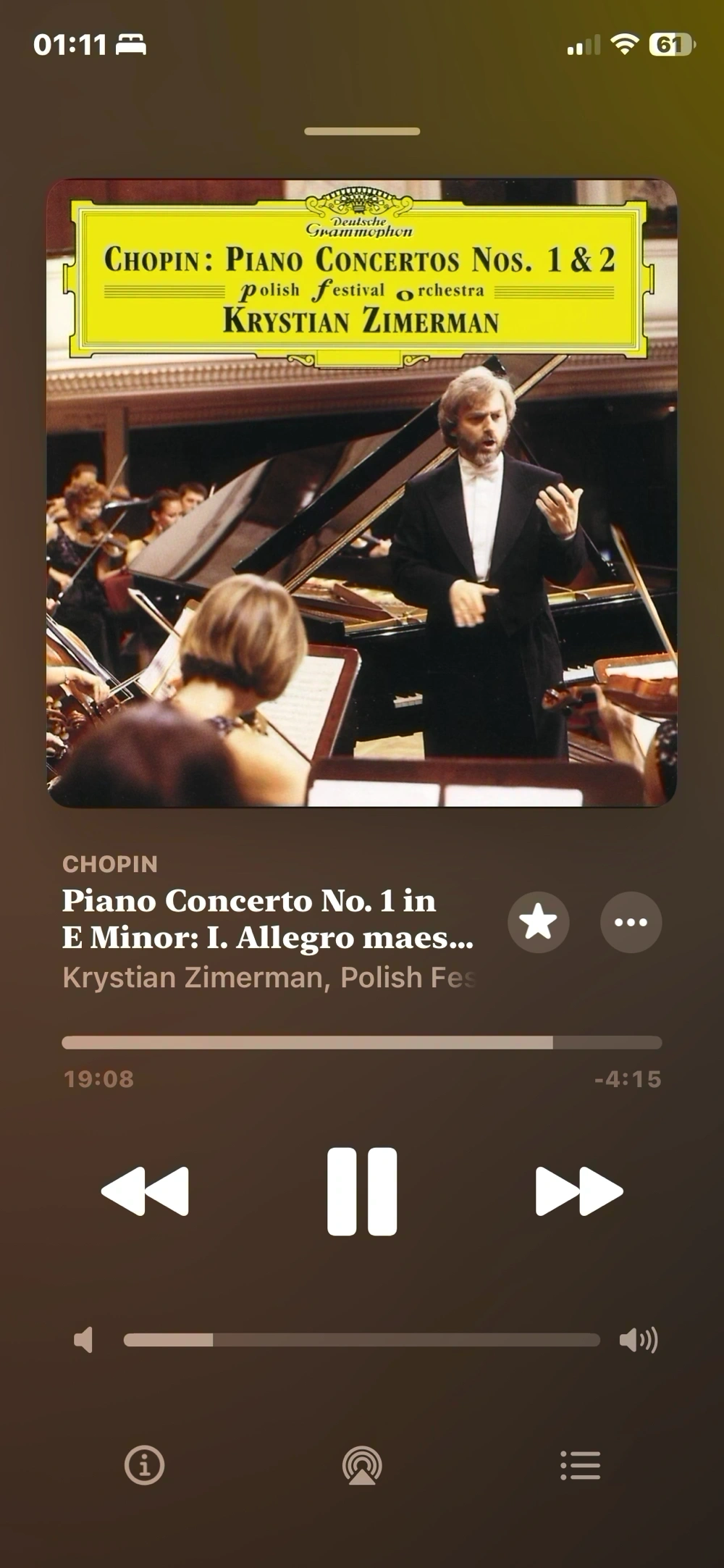 지메르만과 생일이 같은게 자랑스러워짐 지메르만이 직접 지휘해서 그런지 몰라도, 도입부의 현악기 보이싱이 다른 음반들과는 격이 다름 카덴차 파트는 ‘쏟아지는 은하수 사이에 끼어있다면 이런 소리가 들리지 않을까’ 싶을 정도로 황홀하고 화려함
