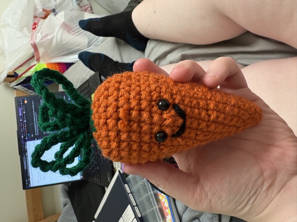 This one was cute and simple! Sheโs a little warped because the back is tight from the strings lol but itโs still cute! Still have to weave in the ends and idk if I will lol