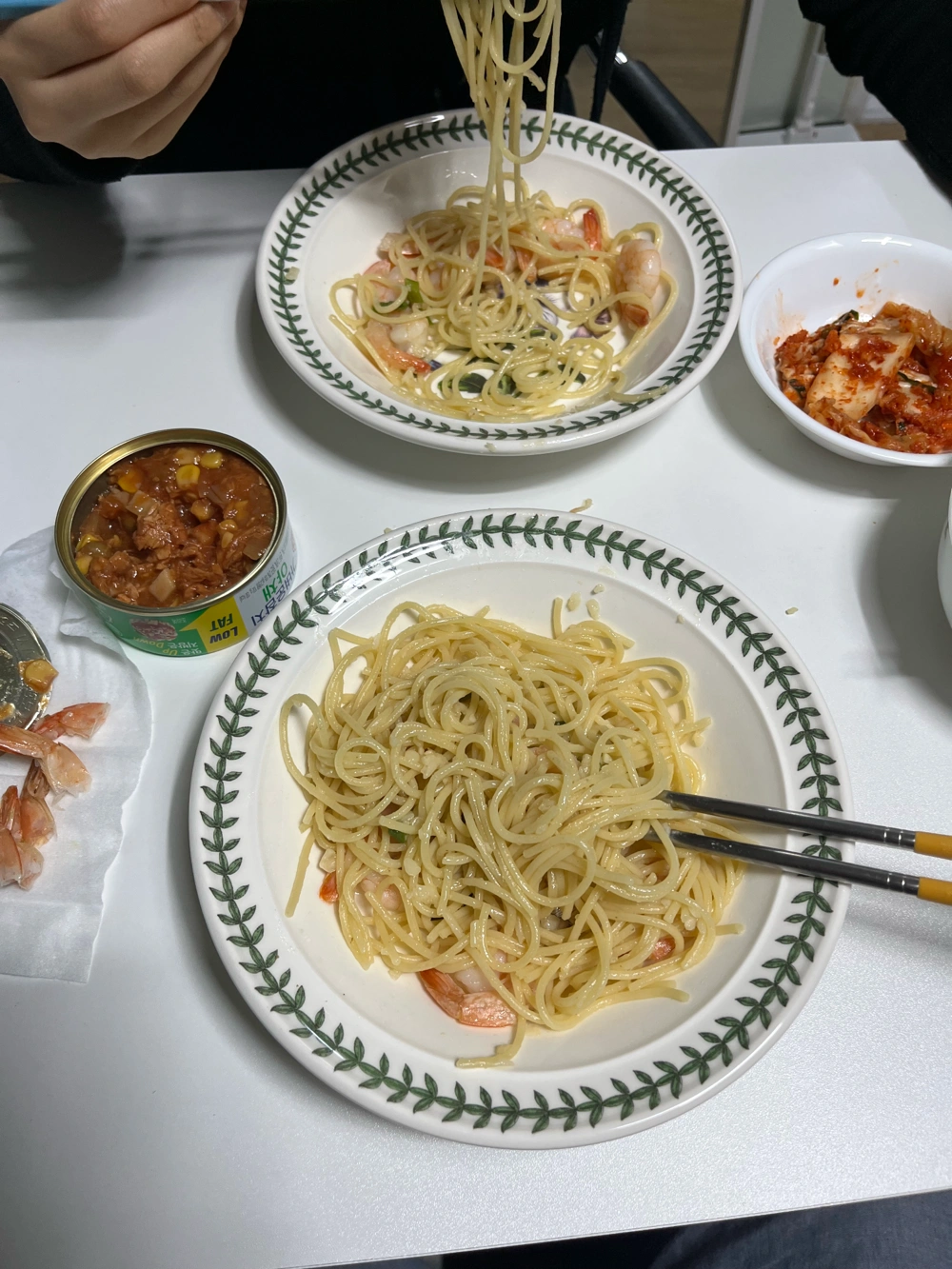 오일파스타 바나나 우유 마시댜