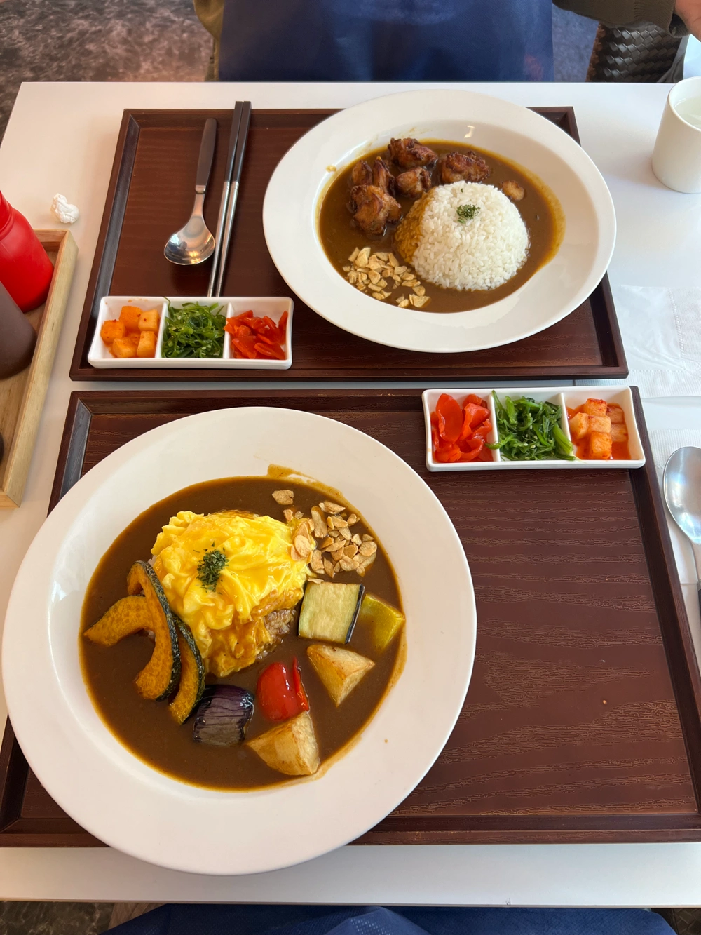 토핑 선택할 수 있는 게 느좋 ~! 밑반찬으로 나오는 미역 줄기도 맛있구 특히 깍두기.. 완내스 깍두기인데 요거 요거~ 나는 야채 토핑을 추가했는데 애호박 감자 가지•••피망..! 근데 이제 나는 피망 싫어 인간이라.. 남겨가지구 다음엔 돈카츠를 추가해 볼 예정 재방문 의사 200%