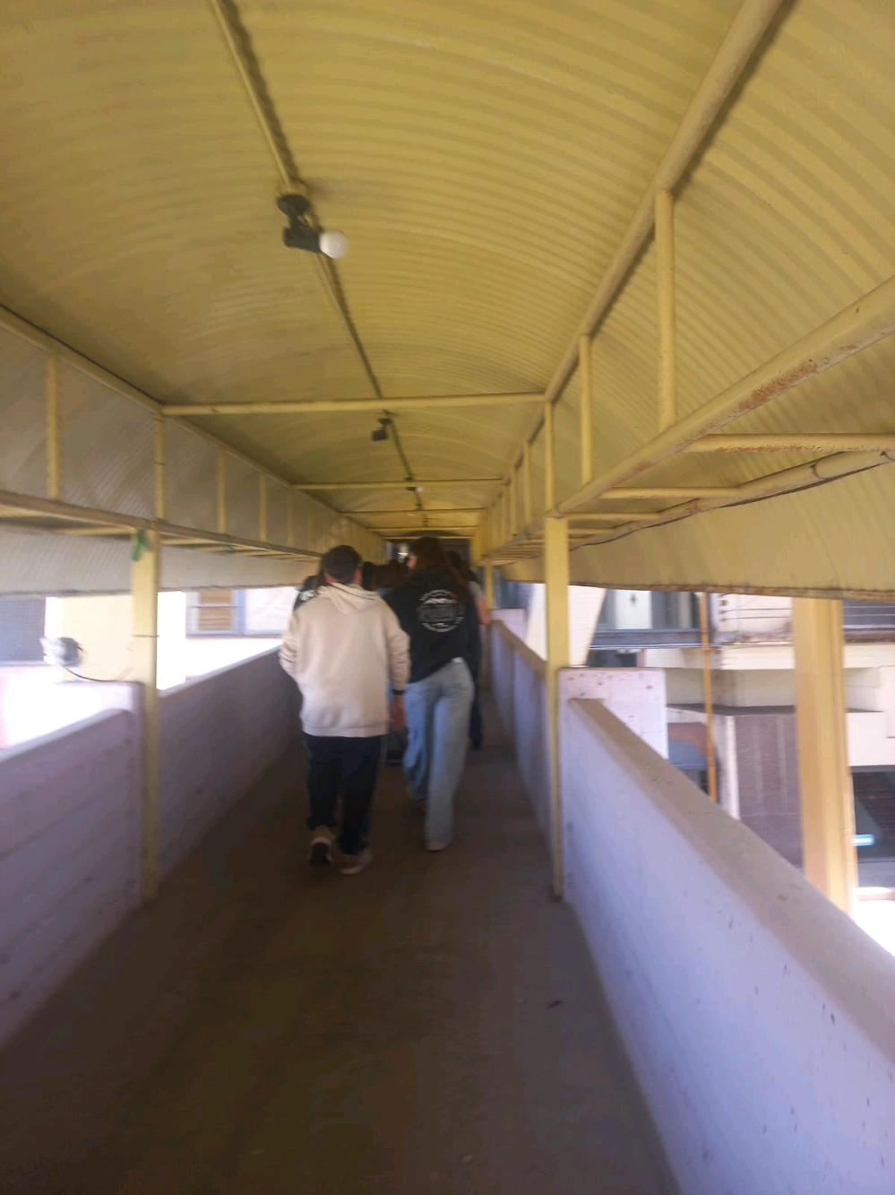 corriendo a buscar el celular, esquivando a los señores y señoras, me choque con la tribuna, un raro le toco el hombro a mi amiga, no podiamos salir de esquivar a la gente parecia que estabamos en un laberinto.