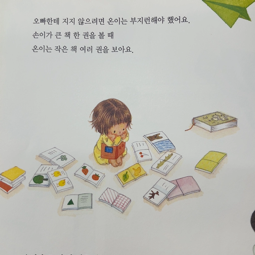 그림책 보기 오빠한테 질 수 없어!!!!! 나도 참 공감한다 저 나이땐 오빠가 참 좋은데 오빠보다 더 잘 하고 싶고 오빠 하는 건 다 따라하고 싶었다 비밀인데 지금도 사실 마찬가지다 오빠가 하는 건 다 좋아보여 🙇🏻♀️ 너무 너무 귀여운 원숭이 오누이 손이 온이야 행복하게 잘 크렴🫧♥