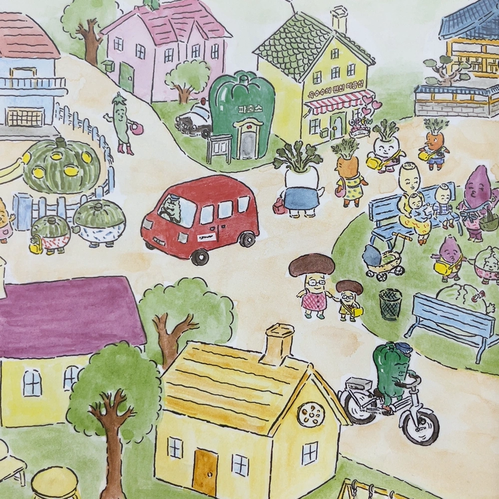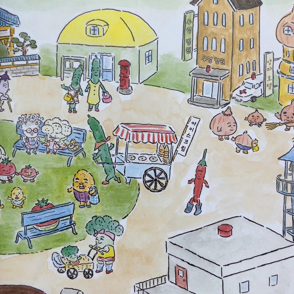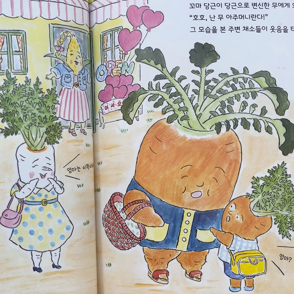 그림책 보기 아놔 너무 귀여워서 계속 웃으면서 봤더니 광대가 아파 너무너무 귀여워요 나를 꾸미는 것은 참 좋은데 다른 사람으로 똑같이 변신했을때 혼동에서 오는 사회적 혼란!! 웃기다ㅠㅠㅋㅋㅌㅋㅋㅋ 채소 미아 대량 발생!!!🗯️