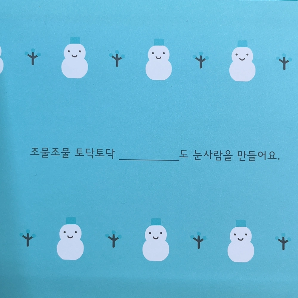 그림책 보기 눈사람이 눈사람을 만드는 귀엽고 신기한 이야기 그 눈사람들은 봄이 되면 파릇파릇 새싹이 되고 꽃이 핀다는 어여쁜 이야기 🫧🌷 조물조물 토닥토닥 지현이도 눈사람을 만들어요.☃️