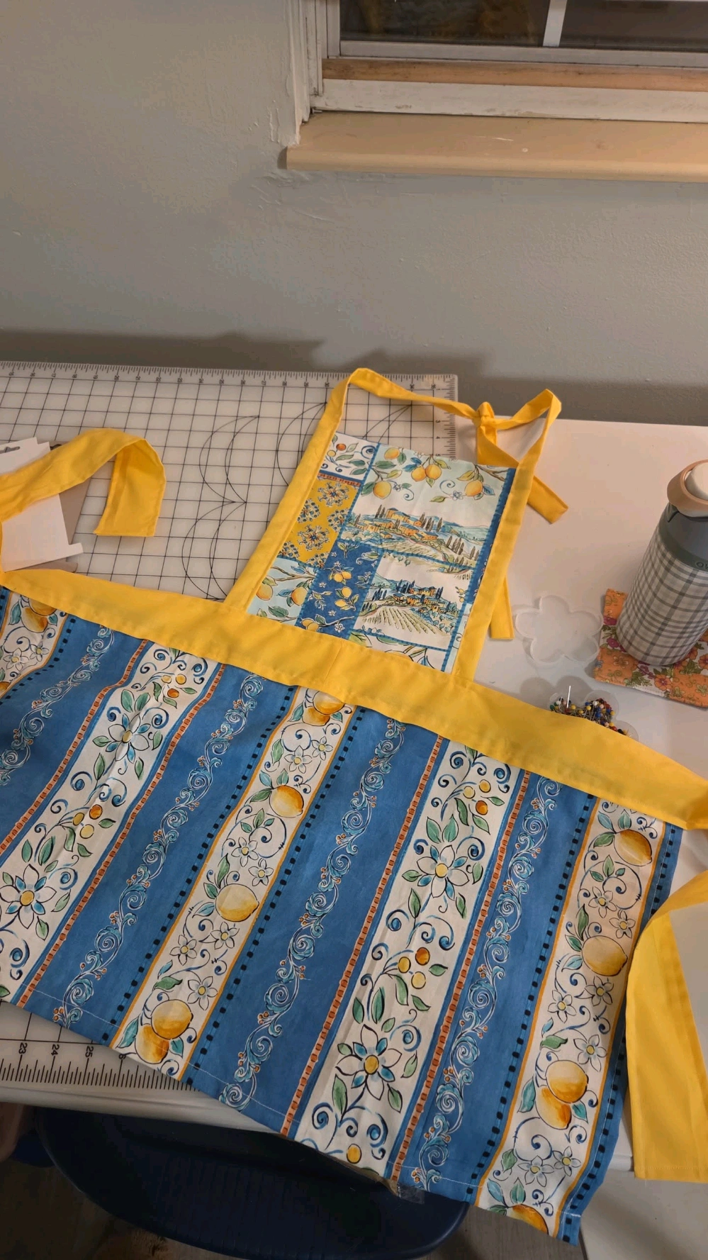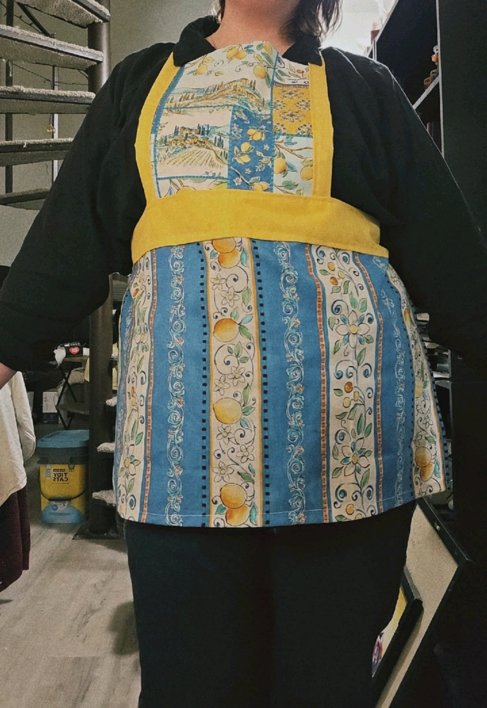 sewed my first apron!!! I love how it turned out and I learned a lot. should I add pockets? maybe, lemon pockets? 🤔