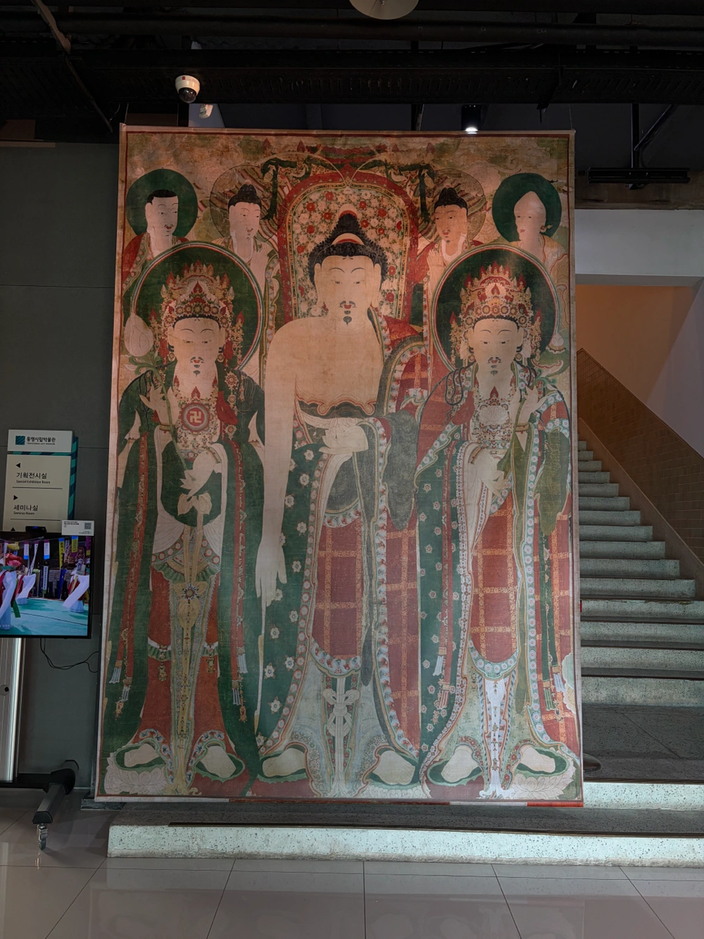 시립이라서 그런가 되게 좁았다... 들어가서 거의 10분만에 1층 다 보고 흠 이게 맞나? 그래도 2층으로 올라가니까 꽤 볼거리가 많았다 나전칠기나 이순신과 관련된 기록이 있어서 좋았음 들어가자마자 웅장한 그림이 걸려 있어서 압도된 기억이 난다