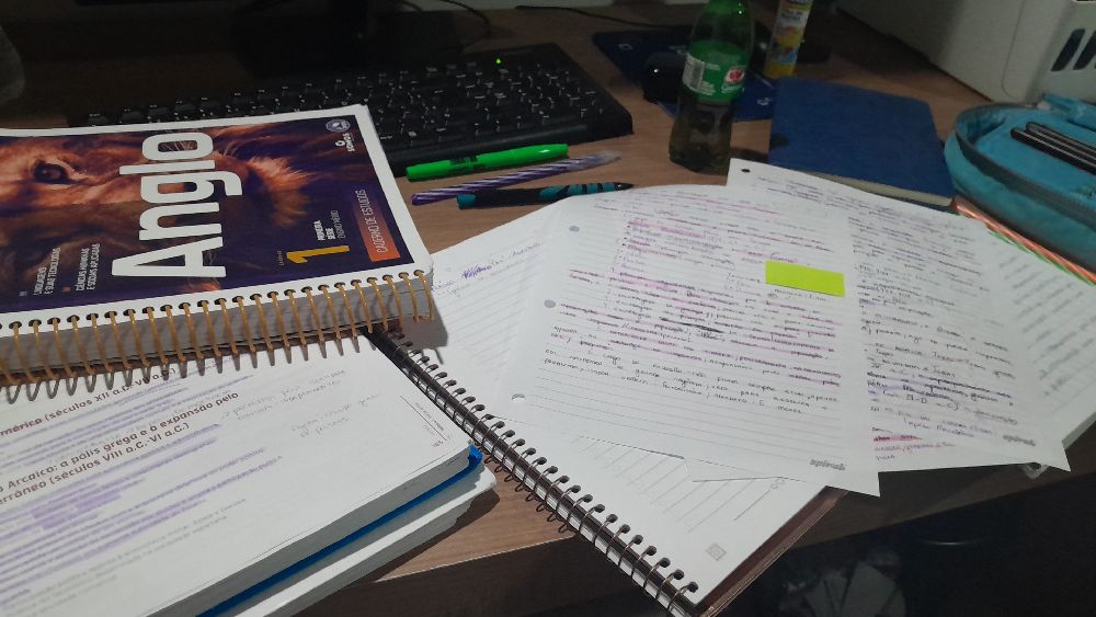semana de provas acabou, vou ter que começar a estudar outros conteúdos pra caramba. início do ensino médio e a primeira semana de provas foi totalmente fora do comum pra mim - não posso mais deixar conteúdo acumular, que raiva😭