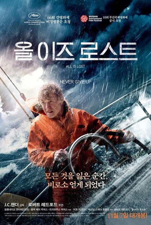 [한줄평] · 침착함과 대응력 1인자. 🚨 치명적인 스포일러가 있을 수도 있으니 후기 감상에 유의하여 주십시오. [진짜 침착하다] ▶ 주인공은 인도양 한 가운데서 요트를 타고 순항중에 버려진 컨텐이너과 충돌하여 배가 파손되면서 물이 들어와 통신 장비 등이 고장나면서 정체없이 떠돌게 된다. ▷ 배도 고치고 통신 장비도 고치려는 노력도 하지만 폭풍우가 몰아쳐 요트는 완전히 물에 잠길 정도이고 식량 또한 바닥이 드러난 상태였다. ▷ 그나마 다행인건 구조 용품들이 들어있는 박스가 있었기에 그곳에 지도, 신호탄 등이 있었기에 요트를 버리고 구명보트를 타고 어떻게든 섬이 있는 곳으로 향하려고 노력한다. ▶ 하지만 상황은 열약해지면서 지금까지 주인공은 속으로 화도 나고 짜증도 났겠지만 항상 침착하게 대응했지만 점차 몸과 마음이 힘들어지지만 유조선이 지나가는걸 본다. ▷ 신호탄을 흔들었지만 그냥 지나가고.. 유람선 또한 보자마자 신호탄도 쏘고 했지만 주인공을 보지 못하고 그냥 지나간다. ▶ 진짜 이제 삶의 희망을 포기하려고 할 때 멀리서 배가 보이지만 신호탄도 다 사용한 상황... 구명보트에 불을 붙이고 자신은 바다로 뛰어든다. 이제 물까지 들어간 상태에서 얼마나 버틸 수 있겠는가... ▷ 모든게 끝났다고 생각했을 때, 구조 보트가 오면서 주인공은 구출되는 듯 보였다. ★ 마지막에 구출되는 모습은 주인공이 진짜 구조 보트에 의해 구출되는지 아니면 주인공의 환상인지는 알 수 없지만 우리는 주인공이 구출되었기를 소망한다. ☆ 주인공은 항상 모든 일에 침착하게 대응하고 생각하였기에 "무슨 일이 있어도 끝까지 살아남지 않았을까?" 생각이 든다. ☆ 일반적인 우리 같았으면 이미 자멸 수준으로 욕만 하면서 바다 위에서 세월을 보냈을 듯 싶다. ☆ 주인공 혼자 바다 위에서의 재난 상황을 극복해가는 과정으로 대사도 거의 없는 수준이고 주인공의 행동으로 모든 것을 해석하고 이해해야한다. 대사 없이도 충분히 행동들도 모든 감정들이 전달되었다. ★ 바다 위에서의 홀로 생존 체험을 하고 싶다면.. 이 영화를 보라.. (반복적인 루틴들이 많고 대사도 거의 하지 않아서 지루할 수 있음) 🎁 희망을 끝까지 포기하지 않는 주인공을 보면서 결과보다는 과정에 초점을 맞추었다.