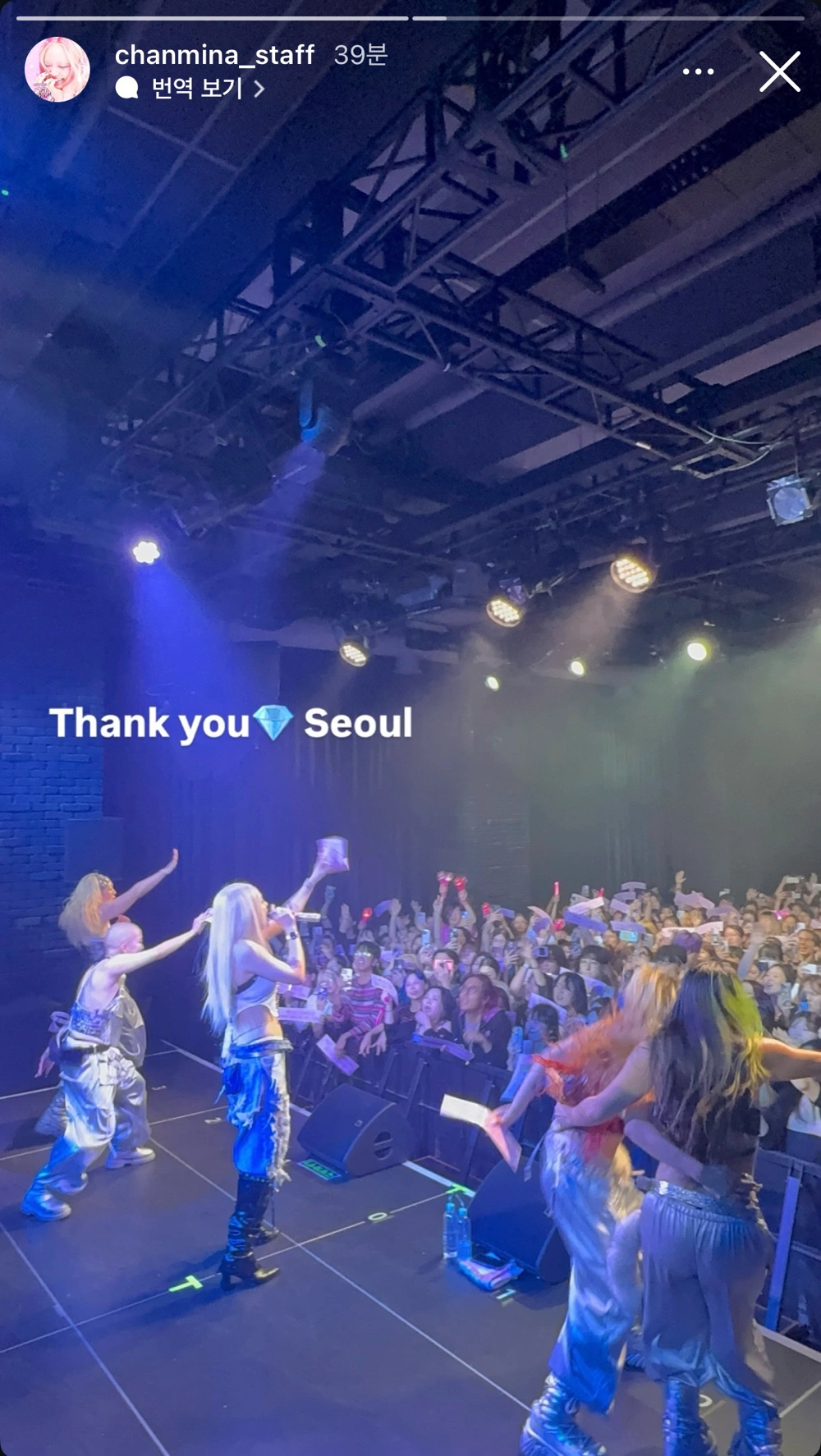 챤미나의 두번째 내한 무신사개러지 두번째 줄에서 보았는데 내 최애 가수를 이렇게 근접거리에서 볼 수 있음에 벅차올랐고 무슨 스타트부터 에너지 엄청 끌어올려서 콘서트내내 핫걸 언니들과 같이 클럽 온 느낌 진짜 너무 재밌었고 행복했고 또 가고 싶다 이 날 MC는 모두 한국어로 했는데 한국어 진심 너무 잘하고💎 노래할땐 퀸이면서도 멘트칠땐 너무 4차원인듯 귀여우셔서 웃겼다 공연이 끝나갈때쯤 죽음에 대해 담담한듯 진심을 잘 풀어내는 문장이 너무 와닿았으며 서프라이즈로 준비한 슬로건데대해 엄청 놀래줘서 즐거웠다 다음에는 일본콘으로 꼭 가봐야지!!!