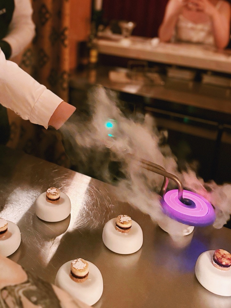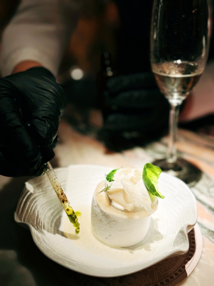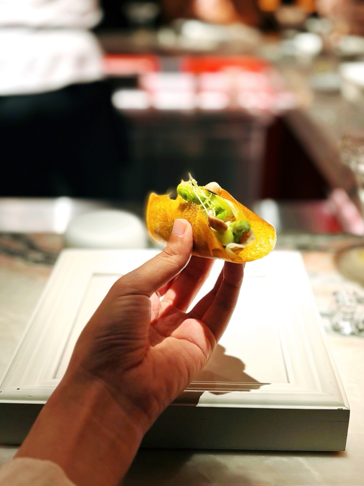 改裝過的環境很美!充滿1920法式風情,我真心讚嘆為了還原那個時代的風情,能有這麼精緻細膩的呈現。 吧台位也有魔幻的魅力,一切都很美。 但料理⋯⋯我因為 Chef 龐大的說菜資訊量,以至於現在呈現失憶的狀態⋯⋯我真的很抱歉⋯⋯要回想哪些段落是在講什麼,對我而言太困難了⋯⋯⋯Chef 從二十歲的求學經歷講到明年第三季菜單,我真的很認真聽,但要統整這些資訊我需要更多精神力去回想,哪天有空再嘗試⋯⋯⋯ 我最喜歡的一道是水果潤餅,將畫作的印象翻轉成料理並不少見,但真的拿畫框當底,抹上像油菜般的餅皮後包裹上蔬菜,這樣的呈現很立體! 整體而言我是喜歡 Chef 的種種分享的,那些人生的碎片都很有趣,Chef 跳耀的思維展開了很多蒙太奇般的畫面,可能接近跑團一樣。 不過我會想要⋯⋯多一點讓我消化資訊量的空白時間⋯⋯還是期待之後的創作,主題我都很有興趣,但真的需要資訊能再整理一下⋯⋯(最起碼進食時先暫停分享⋯)