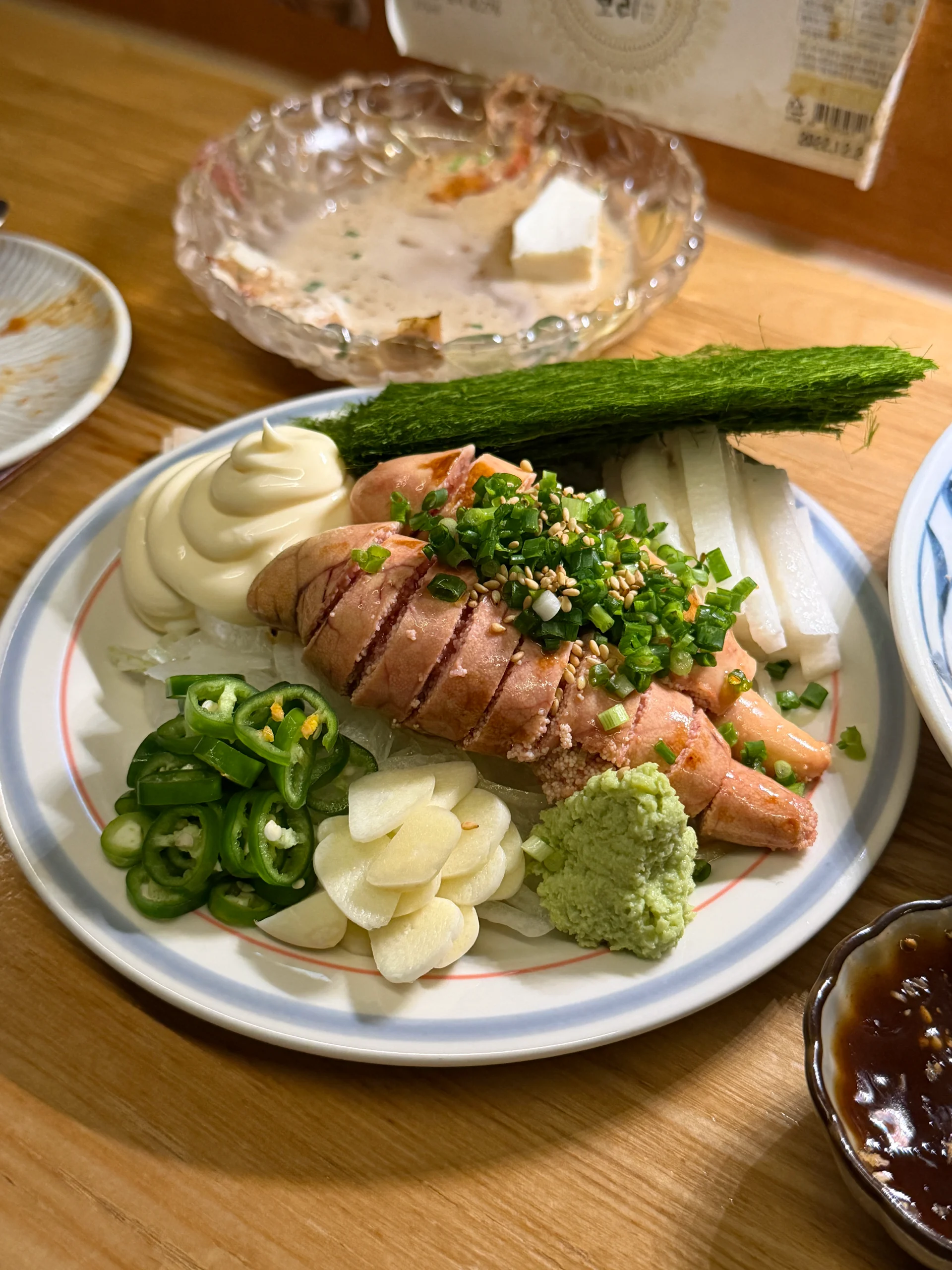 저염명란구이 멘치까스 타코 와사비 먹었삼 다 맛있넹 배부르다