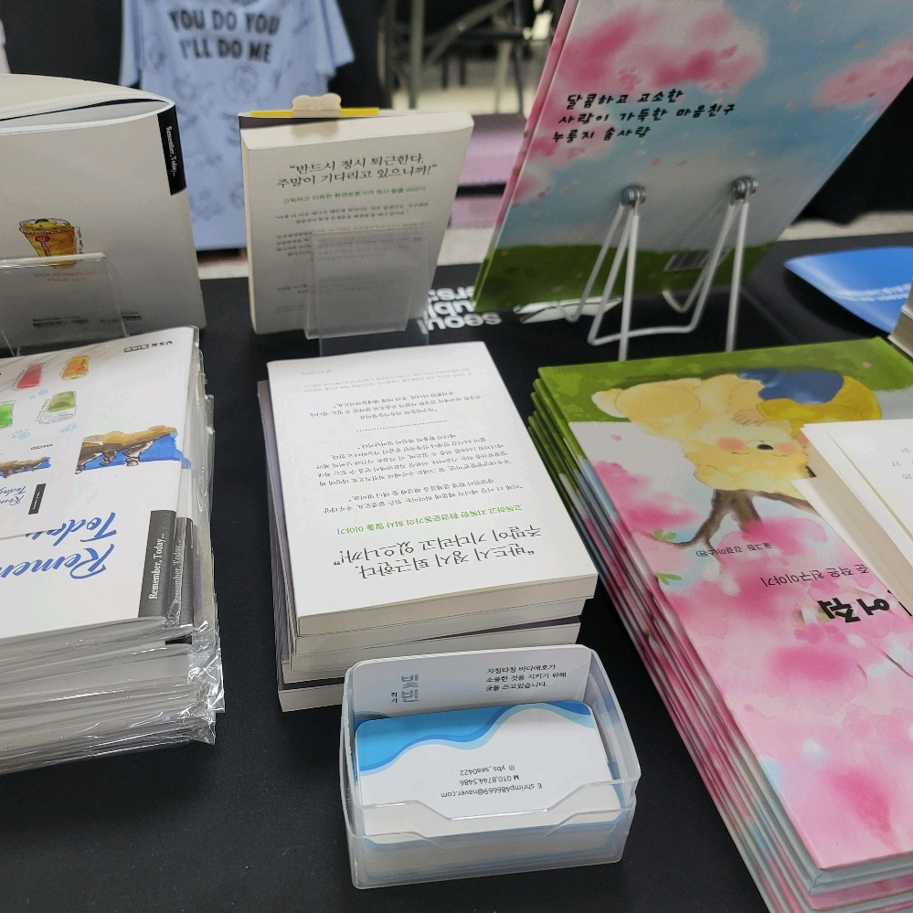 마지막 날을 마무리하며.... 좋은 경험과 소중한 인연들을 만들 수 있어서 무척 기뻤다. 방문해준 사람들도 고마웠고, 곁에서 자리 지켜준 동료들도 감사하다. 또한, 책을 구매해주신 분들에게는 압도적인 감사와 판매왕이 되었다는 영광을 돌립니다✨️ 내가 살면서 언제 이런 경험과 타이틀을 얻을까요ㅋㅋ 인기작가가 된 것만 같은 기분이었습니다 이번 행사의 경험과 추억으로 힘내서 작가활동을 더 이어나갈 수 있을 것 같아요. 북페어동지도 얻어서 다른 페어에도 또 나가보고 싶습니다!
