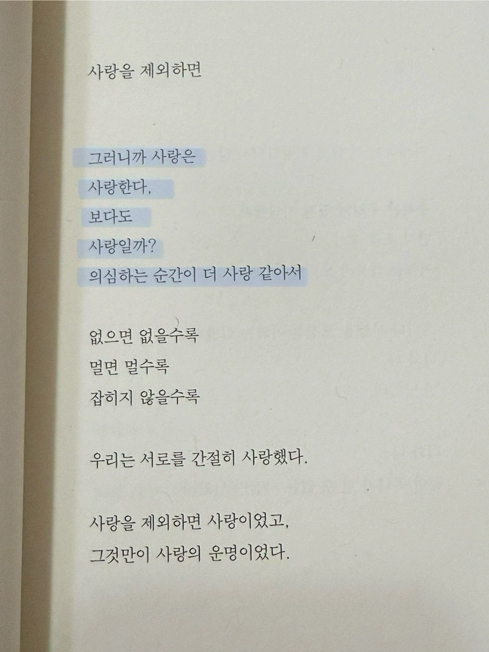 제목의 ‘구겨진 편지‘처럼 눈물과 사랑으로 가득한 시집. 그래서 한정된 주제가 계속 반복된다는 느낌을 받긴 했지만, 이해하기 어렵지 않으면서도 와닿는 문장이 많은 시집이라 좋았다. 특히 <Meer>는 한 줄 한 줄과 전체적인 흐름이 너무 좋았고, <이, 별의 사각지대로부터>와 <사랑은 삶이어서>는 굉장히 안리타 작가님다운 시 같다. 아마 나도 이별을 겪고 나면 훨씬 더 아끼는 시집이 될 것이다.