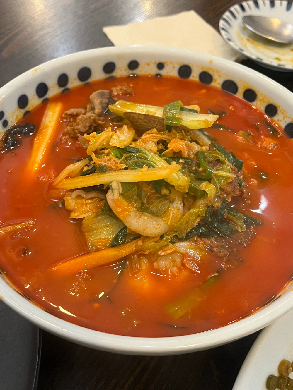 깐풍만두 차돌짬뽕 능이백짬뽕 마늘쫑면 깐풍만두가 젤 맛있음 맥주 땡기는 맛인데 맥주 못 먹어서 슬펐다 차돌짬뽕 능이백짬뽕 둘 다 국물 깔끔 마늘쫑면 중식알리오올리오?? 느낌인데 면에는 간이 안 배어서 무조건 마늘쫑 토핑?이랑 같이 먹어야 함 기대했는데 약간 섭섭 생각해보니 한 5년 전쯤 방문했던 데였다...