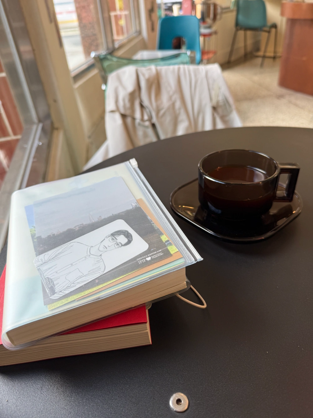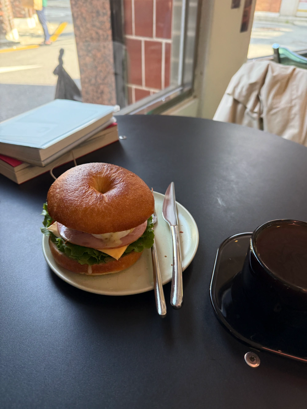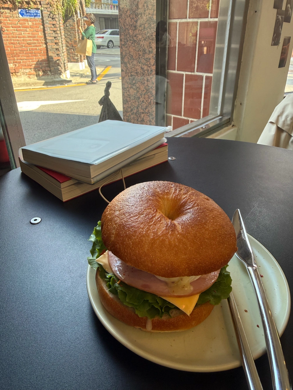 오늘도 그늘 출석🍀 주말에 여기서 책 읽으며 맛도리 먹는 게 소소한 행복이다. 이러려고 돈 벌지머☕️🥯🐷